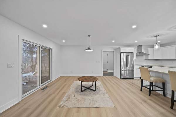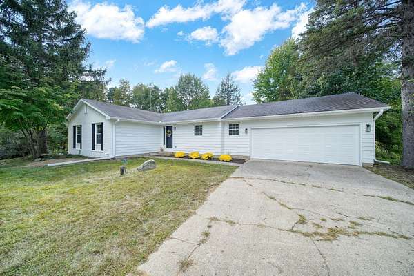 Experience luxury living on 20 private acres spread across two parcels with this stunningly updated ranch estate, perfectly suited as a family compound or multi-generational retreat. Recently refreshed with new exterior paint, gutters, downspouts, recessed soffit lighting, and exterior fixtures, this property is as beautiful outside as it is inside. A 2-car attached garage complements two massive outbuildings (50x100 and 35x80), ideal for storage, hobbies, equipment, or business needs. Enjoy your own private pond framed by mature trees, along with some of the areas best hunting opportunities right outside your door. Step inside to a show-stopping kitchen featuring an oversized Taj Mahal honed island and countertops, all-new appliances, and designer finishes. Oversized LVP flooring spans the main level, paired with custom trim work and solid cedar doors for a warm yet modern feel. The primary suite is a retreat of its own, offering a spa-worthy bath with a walk-in tiled shower with imported tile, stone countertops, and a spacious double-door closet. Two additional main-floor bedrooms complete the ideal layout. The finished walk-out basement extends your living space with a brand-new full bath, custom bar, and media-ready living area designed for a projection screen - perfect for entertaining, game days, and gatherings. Every detail has been thoughtfully updated, including a new furnace, central A/C, plumbing, and electrical, ensuring comfort and efficiency throughout. With two separate parcels, expansive acreage, two incredible outbuildings, and high-end finishes throughout, this rare offering is ideal for those seeking privacy, space, and the opportunity to create a true family retreat or multi-household living environment. From peaceful country living to luxury amenities, this estate truly has it all.