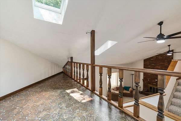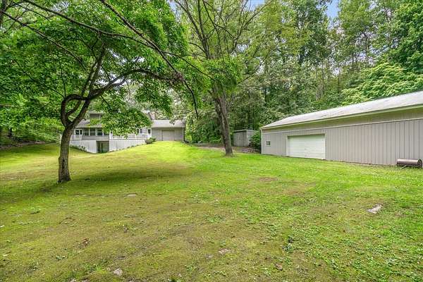 This fabulous home has so much too offer: large liv Rm with fireplace; the kitchen has custom made cabinets, all appliances included, an eating area that leads out to a 3-seasons porch; half bath; main floor laundry with 2nd half bath; primary en-suite with updated bath, walk in closet 7 sliders to a deck;2nd BR on main flr which is being used as a den; BRs 3 & 4 are upstairs plus a fun loft with a skylight overlooking the LR; finished bsmt includes a 2nd fireplace walk-out sliding glass door, brick patio, spacious rec room, dry bar & room with roughed in plumbing for a 5th bath. The garage features a shop or separate storage area with an overhead door. The property is wooded and very private w/shed & 50 x 30 pole barn w/shop.Per seller, hunting is great on this almost 10 acre parcel! The pole barn has a 12' x 14' sliding door and a 16' overhead door, a 29' x 15 shop and a 30' x 10' lean to. The shed offers even more storage! This home has a great location, it is location offers easy access to the major highways, just minutes to the grocery store, shopping, move theater, restaurants and an easy drive to downtown Kalamazoo.