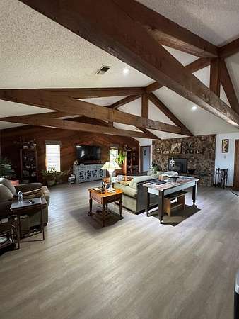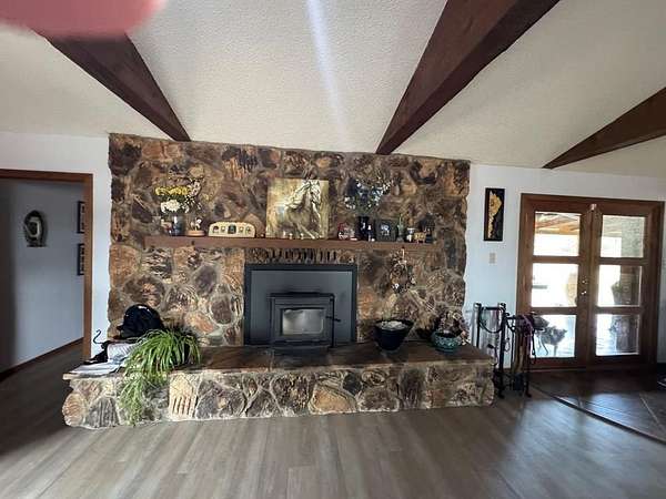 Est $3,017/mo7.31 fenced acres. Ranch Style Home- Very nice roomy updated with barn, located just outside the city limits . New flooring, new paint, new AC, new wood burning stove, updated bathrooms, Has a large bonus room. Well water and City water, new hay barn, horse stalls . Call to see this home. Move in ready!