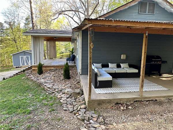 Welcome to your dream retreat or next investment gem-with stunning Beaver Lake views! This beautifully remodeled modern farmhouse sits on 1.66 acres, offering peace, privacy, & picturesque surroundings. Step inside to a charming eat-in kitchen complete w/a spacious pantry, hand-carved countertops, a classic farmhouse sink, & stylish finishes that blend function & flair. The thoughtful layout includes a cozy living room, a versatile bonus/game room, & a spacious mudroom/laundry area. Throughout the home, character abounds - like shiplap walls, subway tile, sliding barn door, & French pantry door. Enjoy morning coffee or unwind in the evening on 1 of 2 covered porches. Oversized front porch offers breathtaking lake views & the perfect backdrop for those quiet, peaceful moments. Add'l highlights include newer electrical, HVAC, roof, windows, fresh interior paint, & professional landscaping. Can be purchased fully furnished for additional fee-move-in ready or rental-ready from day one!