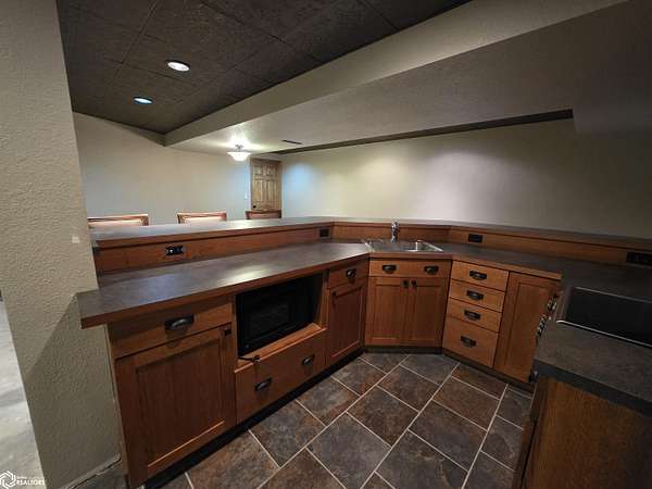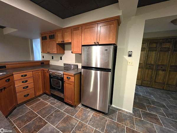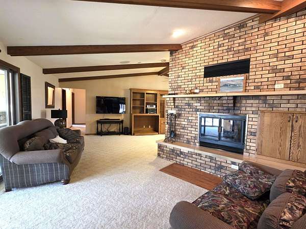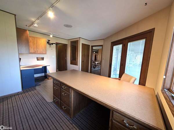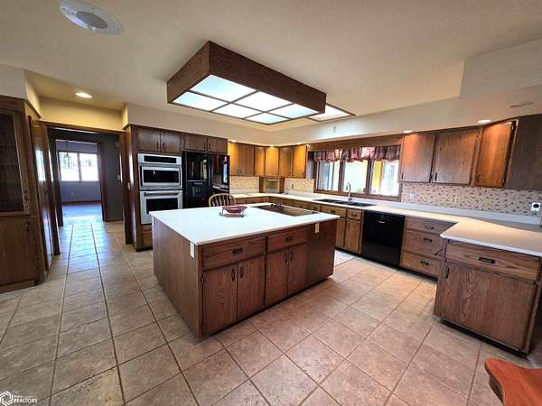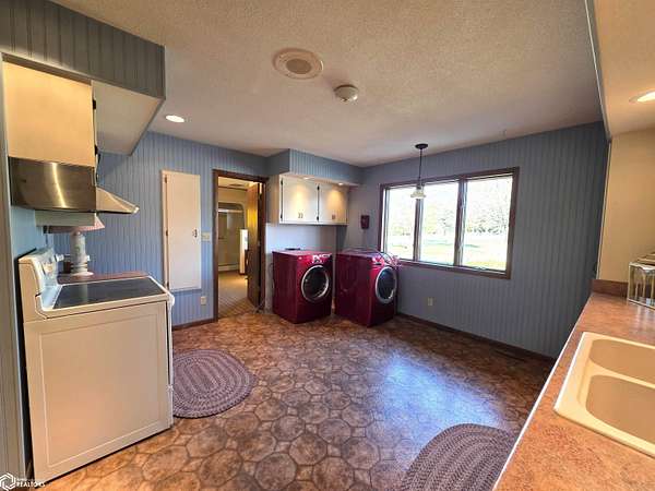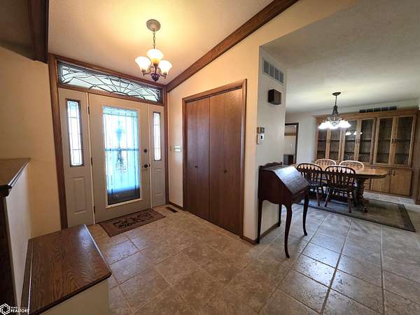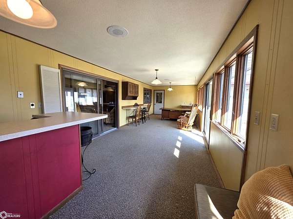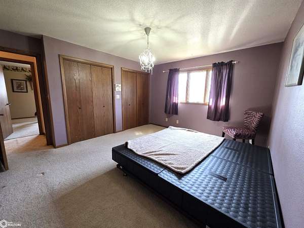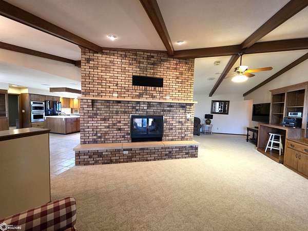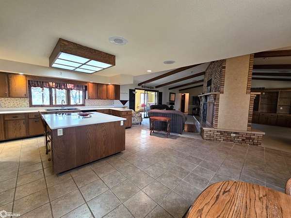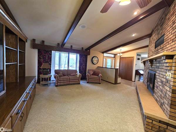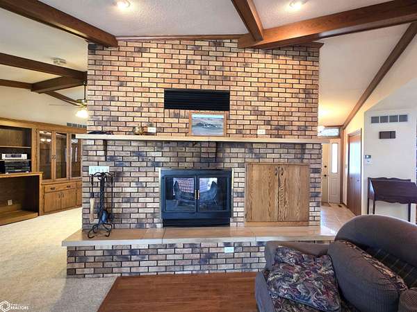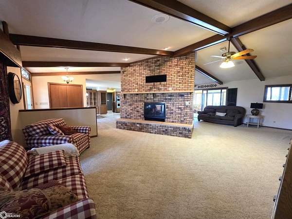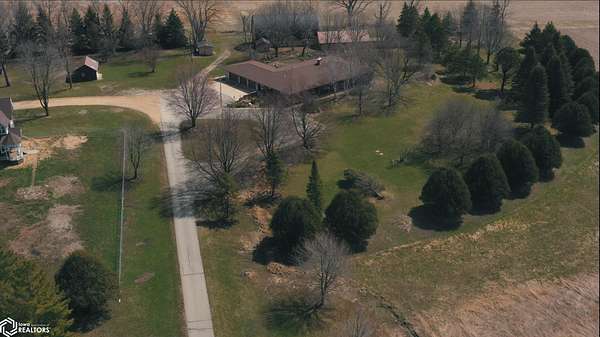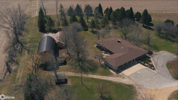 COUNTRY LIVING just outside Charles City, set on 10 acres with mature trees, expansive views, and the convenience of a hard surface road and paved driveway. This well built, thoughtfully designed ranch, featuring a new roof in 2025, offers the kind of comfort, efficiency, and everyday practicality. The main level features a spacious kitchen with an open floor plan, a cozy fireplace, and a dedicated office or optional fourth bedroom, two bedrooms and a primary suite with an en suite bath. You'll also appreciate the added storage with a storage closet and a cedar closet. A four season porch provides the perfect place for taking in every season. An additional kitchen and bathroom near the entrance make it ideal for guests, hobbies, or multi generational living. The finished lower level expands the living space with a second fireplace, full kitchen and bath, and a storm room for added peace of mind. Built for true country efficiency, the home is equipped with a wood elevator, wood room, wood chute, and the fireplace plumbed directly into the house. Start your mornings on the front porch watching wildlife, and enjoy the freedom that comes with space to work, relax, and roam. Outside, the property is well equipped with a three stall attached garage, barn with a new roof in 2020, shed, and ample room for gardening, livestock, or outdoor pursuits. This is an opportunity to own a rural property that offers privacy, functionality, and the lifestyle Northern Iowa is known for.