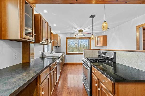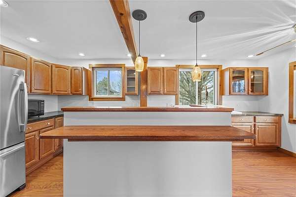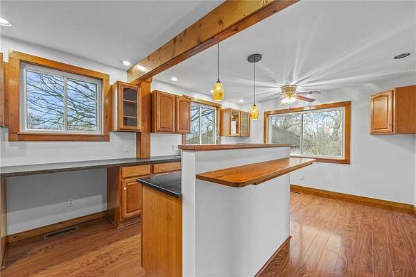 - Cathedral Ceilings, Ceiling Fans, Convertible Bedroom, Country Kitchen, Eat In Kitchen, Entrance Foyer, Great Room, Living Dining Room, Natural Woodwork, Programmable Thermostat, Separate Formal Dining Room, Separate Formal Living Room, Skylights, Solid Surface Counters, Wet Bar