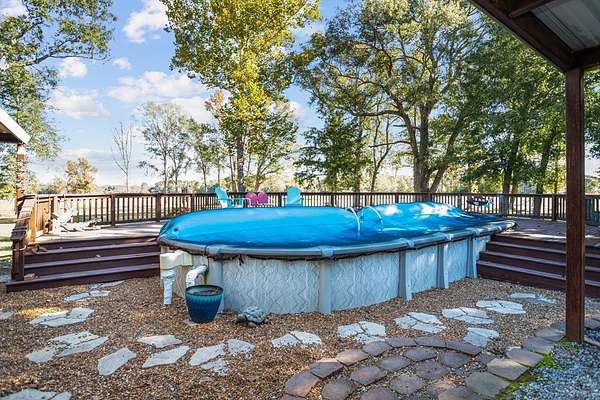 This beautiful two bedroom, one and one-half bath brick home is perfectly situated on 2.82-acres. The lawn is well maintained with mature trees, a garden area, a ditch lily bed that is gorgeous when in bloom, and asphalt driveways that have been topped with rock and sealed. The open concept living, dining, and kitchen welcome you as you enter the home. You will notice the new waterproof, vinyl plank flooring throughout majority of the home, making for easy cleanup. The kitchen has concrete countertops, floating shelves to display your favorite dishes, and ample cabinet space. The primary bedroom and guest bedroom share a hall bath with a large shower. There is a handy laundry with half bath that serves guests well. Outdoors, enjoy the covered entertainment area by 15'x30' above-ground pool. There is a 30'x40' shop with a studio apartment with a full bath. There is also a 20'x40' RV barn on a concrete slab with a 50-amp hook-up, water and sewage connection, and covered parking area.