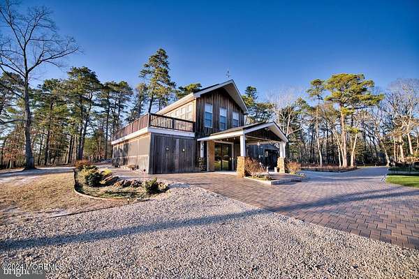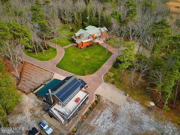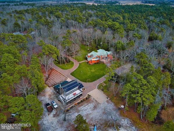 This once-in-a-lifetime 5 acre Estate has been constructed and owned by the same family for 40 years. It is surrounded by thousands of serene N.J. Preservation Trust acres. Sit on one of the many decks and observe Bald Eagles, Red Tail Hawks, deer and hundreds of bird species. Take a short walk along The Wading River and watch otters play, hawks fish, and muskrats and mink build homes. The recently remodeled 4,000 sq.ft. 5 bedroom, 3 bath main residence features a modern chef's kitchen, large dining room, media room, sun-room, spacious family room/den with Massive Jersey Stone fireplace, basement with wood stove, metal roof, hardy plank siding, Geo-thermal heat and air with radiant floor heat, 400 amp electrical service (with 30kw Kohler generator backup), Anderson windows, outside shower, large deck with electric awning. 1.5 acres are landscaped and irrigated. High ground, Sandy storm did not affect this home. The 3,600 sq.ft. Boat house includes a fully finished office with internet and TV, main cave with wood burning stove, garage, inside dry boat storage, tractor shed, bathroom with dual shower, Anderson windows and a large 2nd story deck facing the Wading River. Inside and outside staircases and a woodshed finish off the amenity list. A separate septic system services this building. All utilities are underground. There is a fresh water artesian pond on the property. The custom kitchen includes a DACOR 6 burner gas stove, Sub-Zero refrigerator, (2) Fisher&Paykel drawer dishwashers, custom cabinetry and much more. The rear trex deck is 20x50 +/- and has a large automatic awning. The square footage inputted in MLS represents both the home and boat house.,Apartment Above Garage