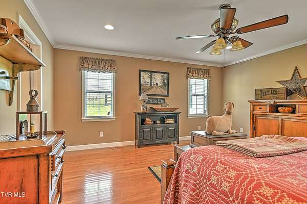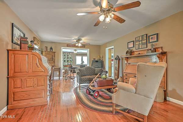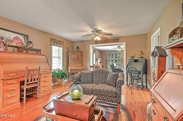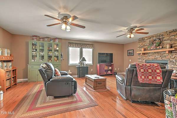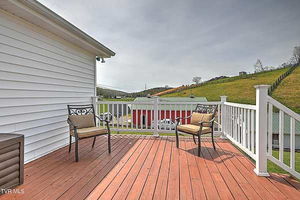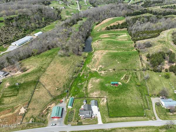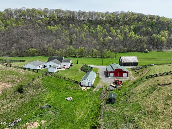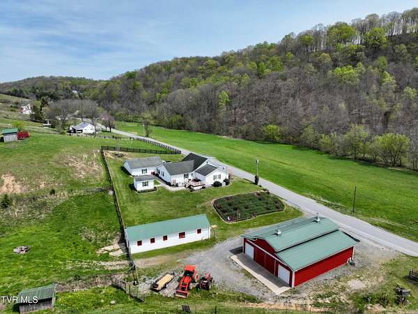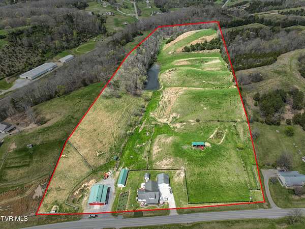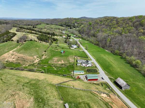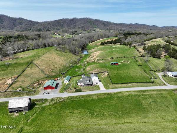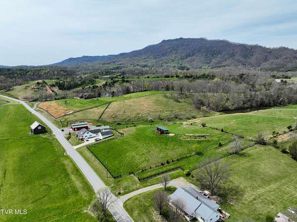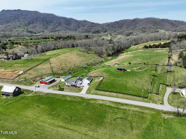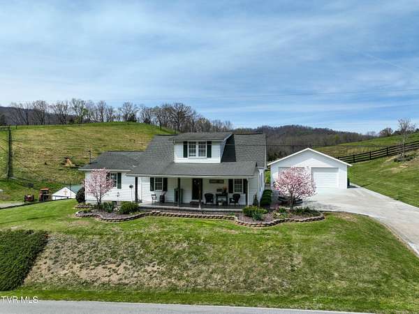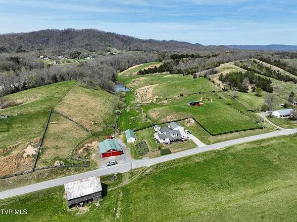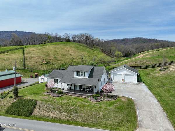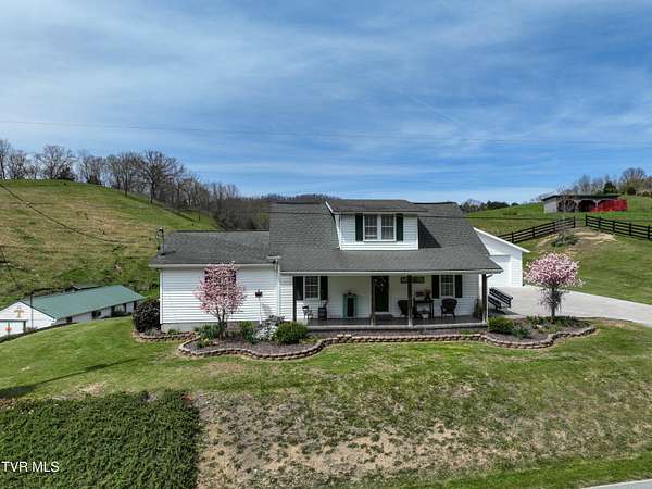 Welcome home to country farm living with this beautifully maintained Farmhouse on 19.25 acres. This 3 bed 2 bath home has the 1920s farmhouse feel with more space added for comfort including a 600 square foot den area, dining area off the kitchen, laundry room, main bedroom and full bathroom all on the main level! The original build features the kitchen, living area, full bathroom, bedroom on the main level, and a bedroom with a second small room upstairs. This property includes a 2-car detached garage, utility building, two sheds for livestock, large pond, newer 2300 square foot barn, and older garage (18x54) all situated on the Greenbelt with mountain views and 580 feet of road frontage. Most of the acreage is fenced in and ready for livestock. Enjoy the covered front deck facing mountain views and a running creek across the road or enjoy the back deck to view the beautiful pasture or grill out and entertain. Don't miss this one-Home and farm all within 10 minutes from I-81 and 20 minutes from Kingsport. All information taken from courthouse records and considered to be correct. Buyers/Buyers' agent to verify all information.