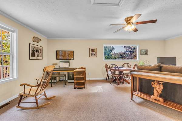 New Price for hard to find acreage in private setting just 25 min from Nashville! Sitting on 5.54 acres in Kingston Springs with a home that is ready for your updates and renovations, this property offers the perfect mix of potential, space, and serenity. The main level features an open floor plan where the living room with adjacent dining area are open to each other. The galley kitchen has a generous pantry for extra food storage. The primary suite is conveniently located on the main floor, and a second oversized upstairs suite, currently used as a bonus/media room, adds even more possibilities. Additionally, the partially finished basement, with its own entrance, full bath, and two versatile flex rooms currently used as guest bedrooms, can serve as guest quarters, media rooms or home offices if needed. Enjoy multiple outdoor living spaces, including an upper deck ideal for morning coffee and a large back deck overlooking the wooded acreage. The property's rolling terrain and mature hardwoods makes for the ideal rural setting and a cleared area to the left of the home makes the perfect spot for entertaining or even a large garden. Here you will find privacy and natural beauty in every direction. Home is currently under contract with a Sale of Home Contingency with a 48 hour First Right of Refusal (Kick-out Clause).