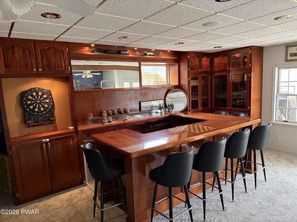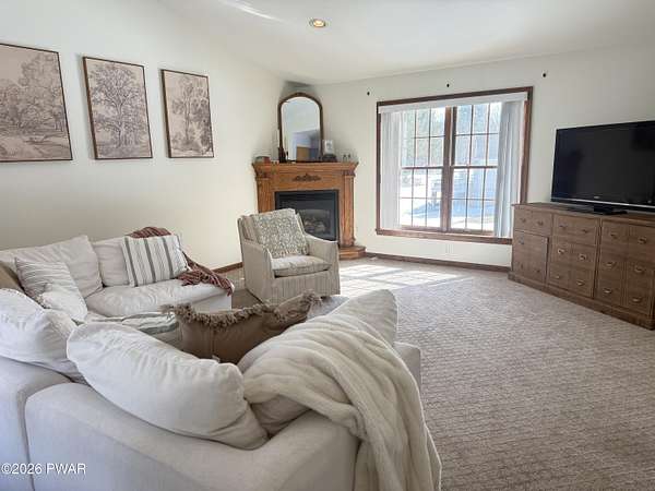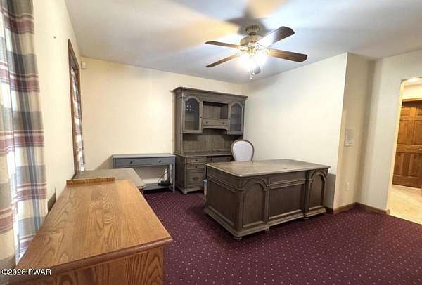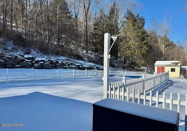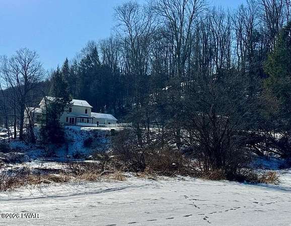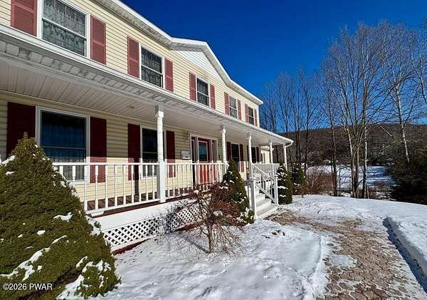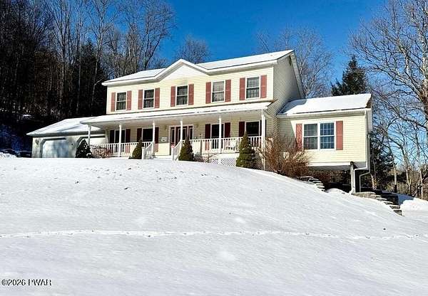 Nestled on 14+ scenic acres along the peaceful Dyberry Creek and located less than a mile from historic downtown Honesdale, this custom Colonial offers the perfect balance of privacy and convenience at the end of a quiet cul-de-sac on desirable Parkway Drive. With over 3,800 square feet of living space, the home showcases quality craftsmanship and a thoughtfully designed layout, featuring a spacious kitchen that opens to a large deck overlooking the in-ground pool and newly fenced backyard, creating an ideal setting for summer entertaining or relaxing evenings at home. The main level includes a bright living room with cathedral ceilings and fireplace, formal dining room, dedicated home office, and first-floor laundry, while upstairs offers three generously sized bedrooms, including a comfortable primary suite with sitting area, large walk-in closet, and private full bath. The walk-out lower level serves as an entertainer's retreat with a custom bar and media space, and recent upgrades including brand new flooring and a newly installed Navien furnace provide modern efficiency and peace of mind. Ample storage throughout, including a walk-up attic, along with an attached two-car garage, complete this exceptional property that delivers acreage, creek frontage, privacy, updates, and close proximity to town in one truly special setting.