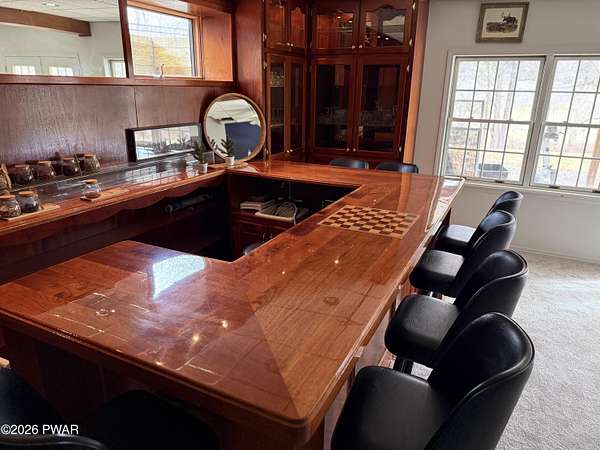 - Attic Storage, Bar, Built-In Features, Ceiling Fan(s), Central Vacuum, Double Vanity, Eat-In Kitchen, Entrance Foyer, His and Hers Closets, Kitchen Island, Natural Woodwork, Radon Mitigation System, Recessed Lighting, Vaulted Ceiling(s), Walk-In Closet(s), Wet Bar