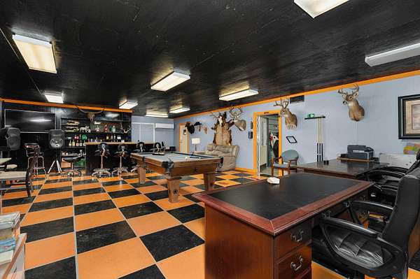 Have you ever wanted to venture into buying a property with more than one idea in mind? If so, I want you to check out this 8.31 acres and bardo inspired home in a great location with lots of road frontage on a busy highway that has the potential to become a idea business location. This property features 2 additional septic systems and 2 30/40 amp breaker boxes for someone to utilize if need be. Property has several storage buildings on the property and a fence along the boundary line. The bardo has a chef's kitchen with a gas and electric stove, beautifully crafted cabinets with a large pantry. Pool table in the game/office area along with a large wet bar and a hidden room behind it. In the back of the property is a 43x100 concrete slab and a another 30x20 beside it for you the build a great barn or another house! There is also a house pad that was built in the front of the property that is covered with grass but another great spot to invest or build on. This property features all kinds of things as far as the imagination can think!! This could become a trucking area for large trucks as it has three actual driveways. There is lots to meet your expectations on this property so call myself or your favorite realtor to get a look.