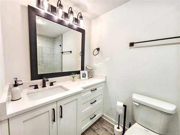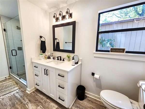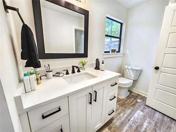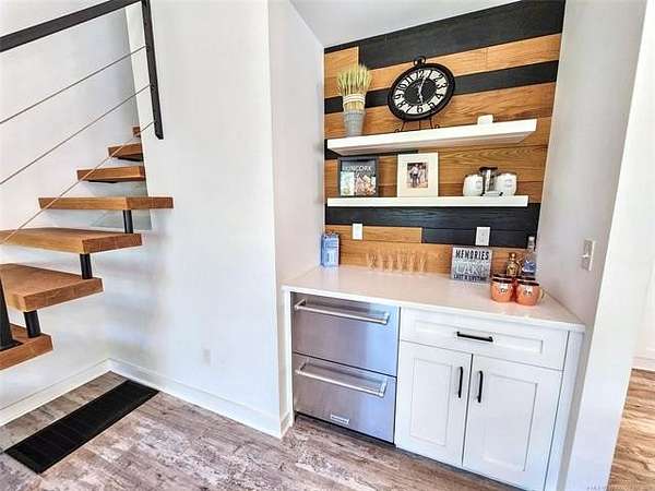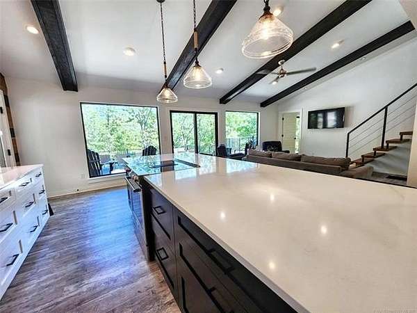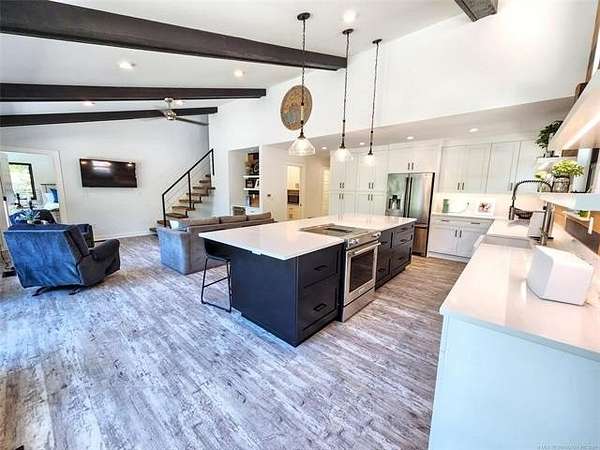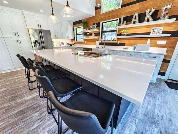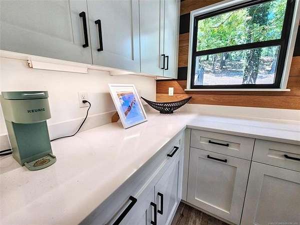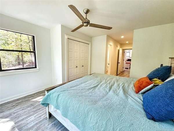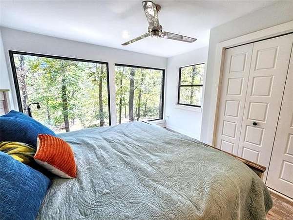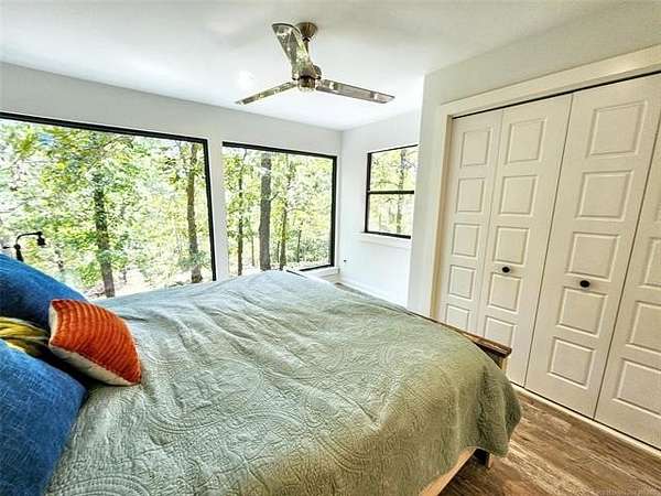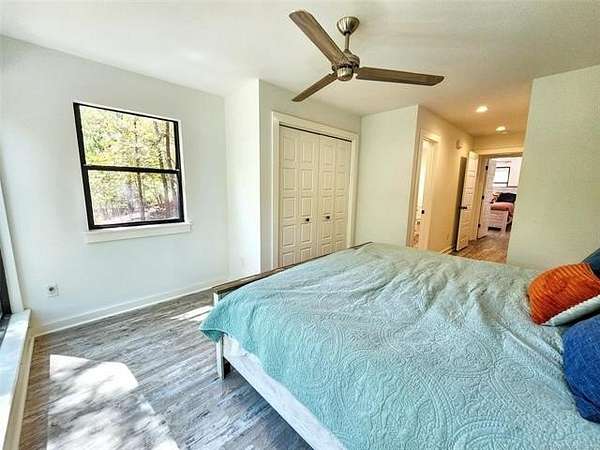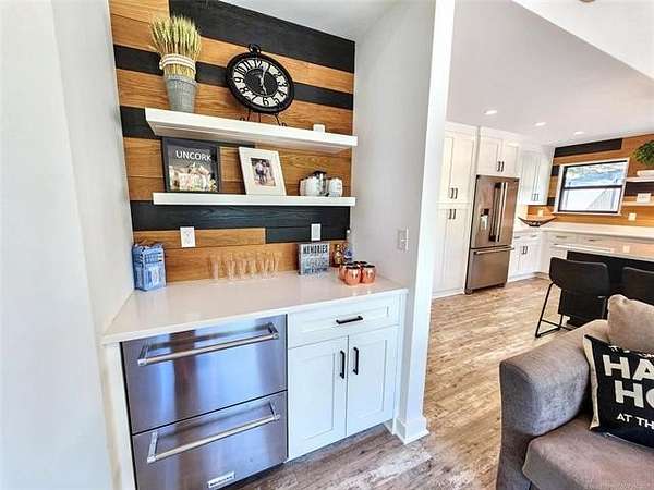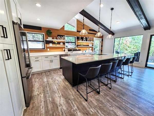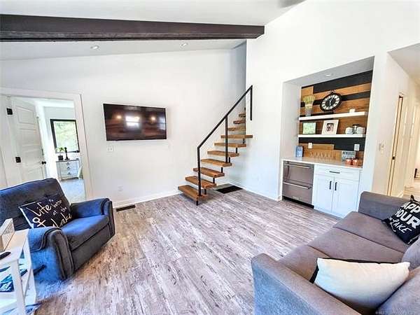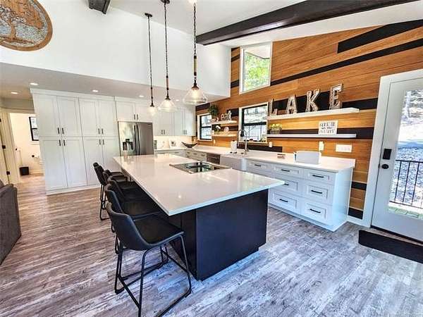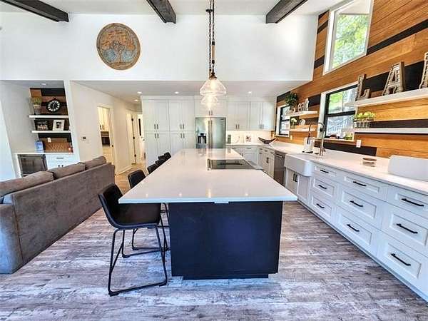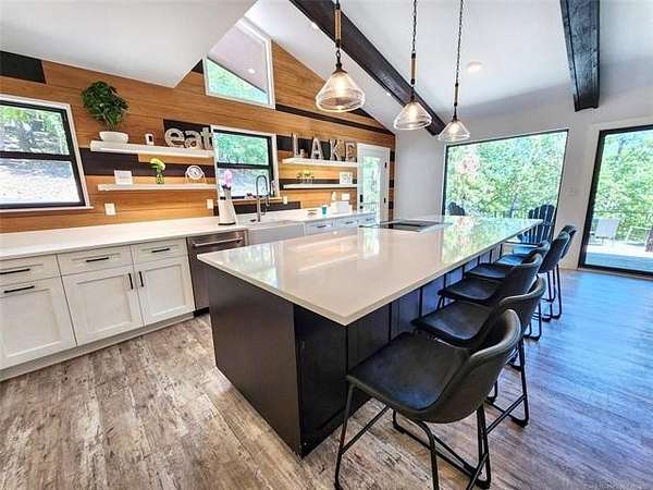 Completely remodeled in 2021 by an award-winning architect and contractor, this home is a showstopper inside and out. The open floorplan features a vaulted ceiling, walls of windows framing gorgeous wooded views, and a wet bar perfect for entertaining. Every detail has been carefully designed to create a space that feels like you're living high among the treetops--yet with all the modern updates you desire.
