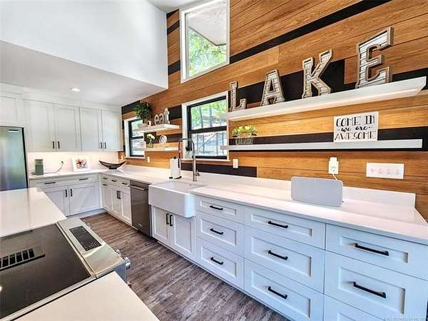 Welcome to "The Tree House" - a stunning 4 bedroom, 3 bath lake home that blends modern luxury with a true nature retreat. Perched on 3.5 acres with a year-round lake view and direct lake access, this property adjoins Corp land, so you can literally walk to the water. Just one block from Barnacle Bill Marina, the location is unbeatable for lake living and convenience.
