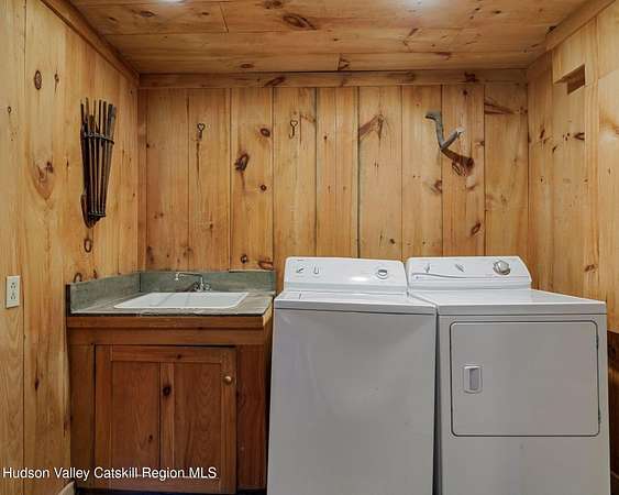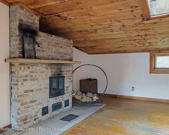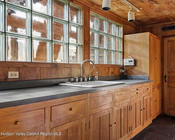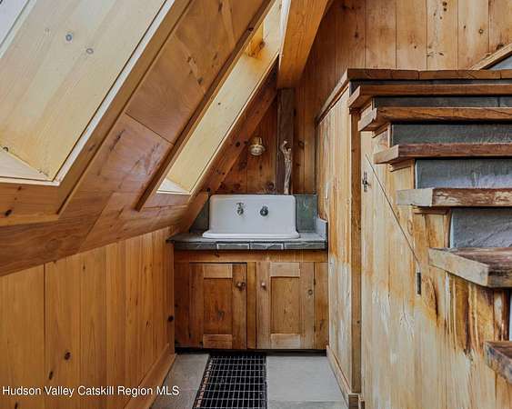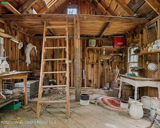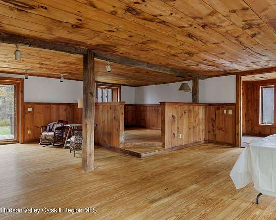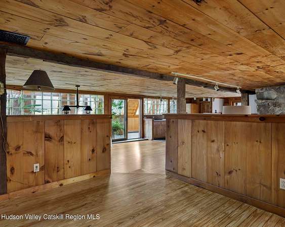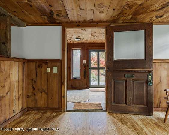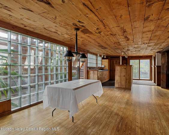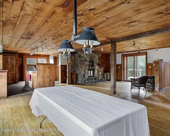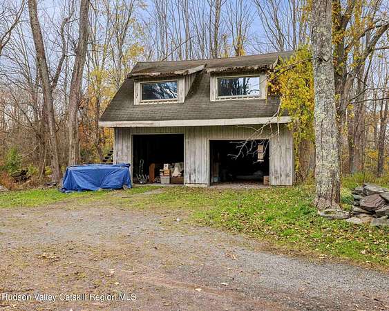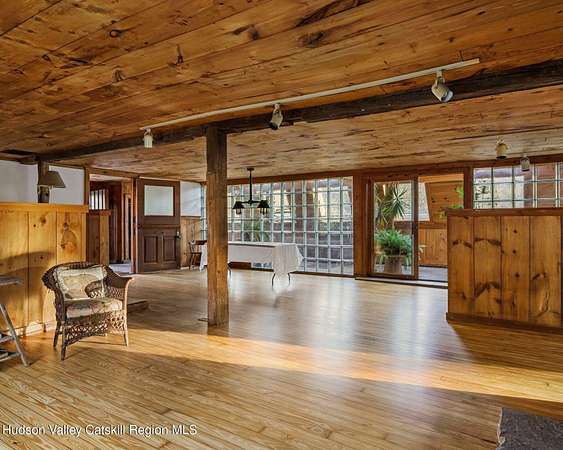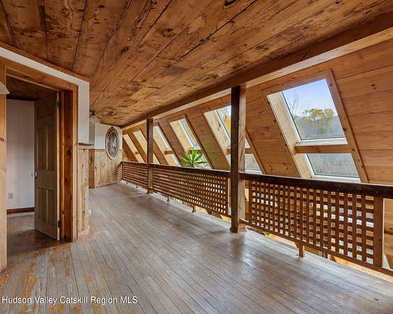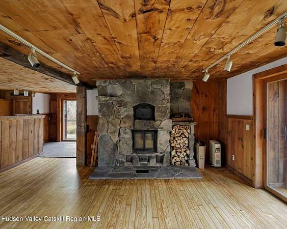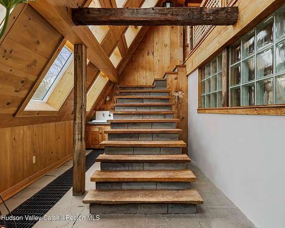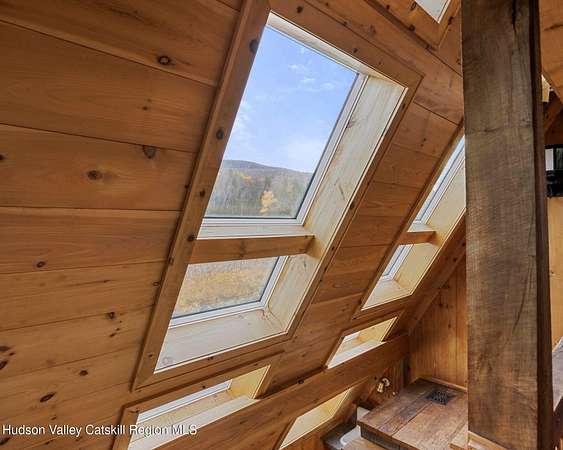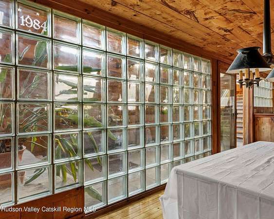 One-of-a-Kind Passive Solar Home on 25 Private Acres Set amid the scenic majesty of the Catskill Mountains, this extraordinary passive solar custom home was born from a Manhattan couple's late-1980s dream - a vision that blended the charm of old-world craftsmanship with the intelligence of nature's design. Built using ''envelope'' construction techniques to capture and circulate the earth's natural warmth and cooling, this residence stands as a true architectural conversation piece, that was featured in Country Living magazine. A double row of south-facing skylights frames sweeping mountain views and captures abundant winter sunlight, while deep roof overhangs provide shade from the high summer sun. At the heart of the structure stands a stunning Finnish-style bluestone fireplace - both centerpiece and natural radiator - absorbing and radiating warmth throughout the home. A second-floor bedroom fireplace adds yet another cozy heat source. Glass brick walls between the main living area and the soaring two-story solarium allow light to flow freely, nurturing a lush indoor greenhouse filled with mature plants and trees. Many of the home's doors are over 100 years old - thick, hand-crafted Dutch doors lovingly sourced from antique auctions to evoke timeless farmhouse charm. The Shaker-inspired kitchen cabinetry completes the home's warm, artisanal aesthetic. Upstairs, the open loft overlooks the sunlit atrium below, creating a tranquil connection between the living spaces. The home's brand-new 35-year architectural roof (installed Fall 2025) ensures lasting protection for decades to come, complemented by a whole-house back up generator in case of power outages. Set on 25 private acres, the property includes a detached garage with workshop/studio potential, overgrown woodland trails waiting to be rediscovered, and remnants of historic outbuildings that whisper stories of the past. This is a living sculpture, a place of light, warmth, and possibility. Whether you're an artist, nature lover, or visionary ready to breathe new life into this inspired creation, the opportunity is here. Priced to sell and ready for its next chapter - who will answer its call? A 3D Walkthrough Tour is available in the digital Lookbook or by request from the listing agent.