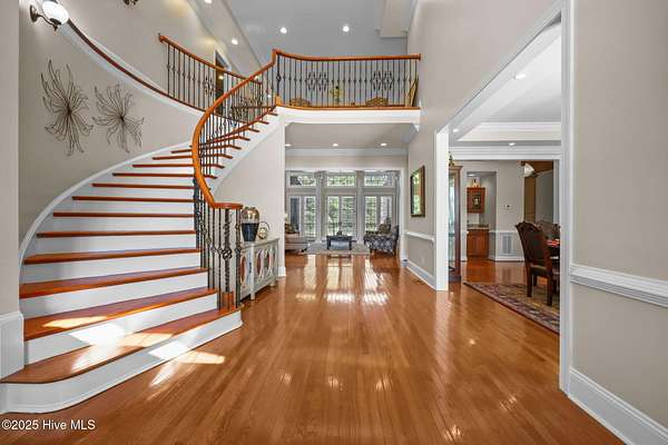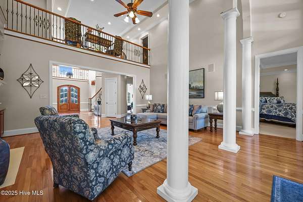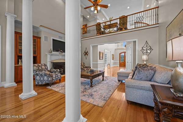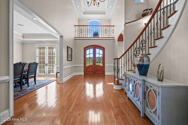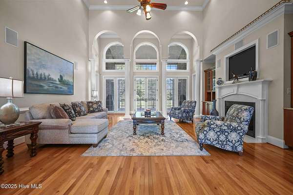Welcome to 187 Country Squire Ln! This immaculate, 4 bedrooms, 6 bath Estate provides county living, with interior and exterior room to spread out and enjoy time with friends and family. A long tree lined, and lamp post lit concrete path guides you up to the circular driveway. As you ascend the stacked stone steps, you are met by double, arched entry doors which lead to an open foyer and living room with 1 of two gas fireplaces. Left of the foyer is the home office and to the right is the formal dining room. Moving forward from the foyer, is a grand staircase with wrought iron railing leading to the second floor. The hardwood floors extend through the downstairs area. Completing the first floor is the master bedroom suite, kitchen with island, family room, laundry room, a second gas fireplace, and two half baths. The hallway from the kitchen leads out to the three-car garage with an additional motorcycle garage accessed from the rear. From the living room, French double doors lead out to the covered patio. The second floor can be accessed from the staircase in the foyer or by a second staircase off the kitchen. Upstairs is a long hallway connecting 3 guest bedrooms, two full bathrooms and a billiard room on the right to a gym, family room, and office on the left. In the center, the hallway is open to the downstairs on both sides. A third floor theatre is accessed through the guest bedroom with sitting off the back. This home also has a wired outdoor shed with screened in area for relaxing outside. Two tankless water heaters and a 30 KW whole home backup generator are sure to enhance the experience of this beautiful, well-maintained estate. Contact the listing agent for more information.