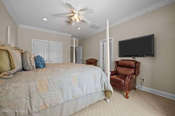 - Blinds/Shades, Ceiling Fan(s), Gas Log, High Ceilings, Kitchen Island, Master Downstairs, Pantry, Sound System, Walk-In Closet(s), Walk-In Shower, Whole-Home Generator