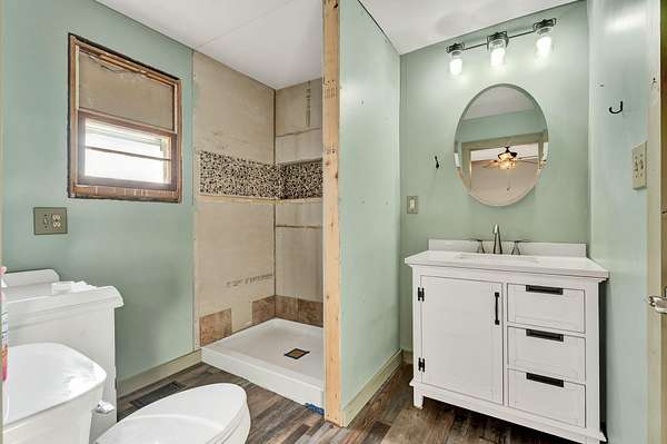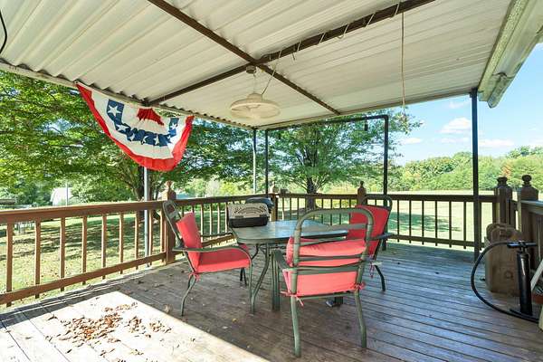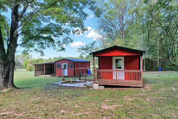 Tucked off County Rd 163 near Hwy 411, this secluded 13+/--acre homestead gives you privacy, hardwoods underfoot, and room to finish things your way. It's a 2 bedroom, 2 bath home with a bonus room featuring a fireplace. A 600 sq ft basement/cellar with a concrete floor offers additional space for storage. Big items are handled: HVAC installed in 2022 with a 10-year warranty, a metal roof, and vinyl windows added in 2020. Inside, improvements are underway-insulation in the interior walls, the bonus room opened to the studs and ready to finish (office/bed/sitting room), and enough vinyl plank flooring on site to cover the home. The kitchen floor is prepped and ready for its final finish. Outdoors, the home sits out of sight from the road with gentle topography, covered porches front and back, and areas that appear well-suited for potential future building sites. A chicken coop, an outbuilding set up for a workshop, and a separate outbuilding for storage are included, while a patio area with grill and seating makes outdoor evenings easy. Seller notes there may be an additional septic tank on the property. Pest Shield service has been in place, serviced twice a year, since 2020 and is paid through Spring 2026. A home warranty will be provided at closing. Xfinity previously installed. Seller is offering a home warranty.