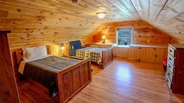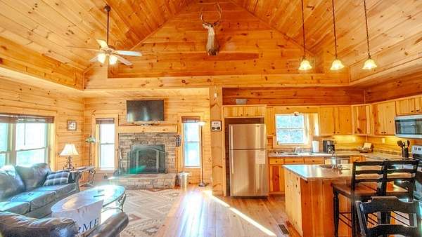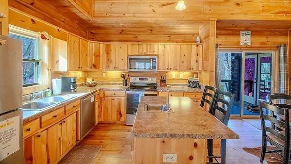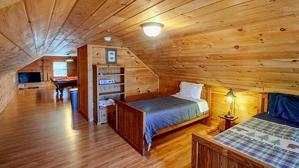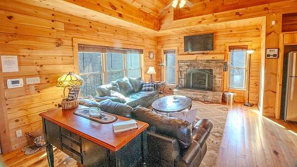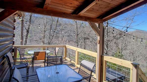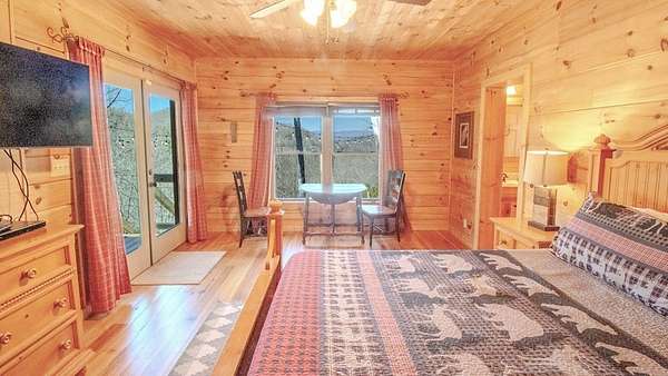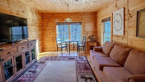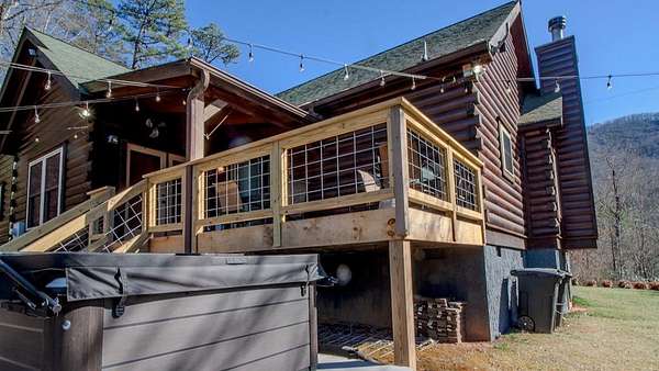 Come see this open concept Log Cabin in a setting of calm, quiet, and long range mountain views with creek sounds in the background. Cross over the Tuckaseegee River and travel down serene paved back country roads leading to your private retreat with almost 2 acres giving a feeling of being a world away yet you are minutes to Bryson City, Dillsboro/Sylva and Cherokee. Beautiful knotty pine inside and wide plank hardwood floors with tasteful log cabin decor surrounds you with the warmth only a log cabin can give. Kitchen has an island with a prep sink and lots of storage and countertop space.The great room with wood-burning fireplace opens up to the kitchen and dining area for maximum entertaining space. Through the French doors you will find a family room, large primary bedroom suite with doors leading out to the covered rear deck providing convenient access to the six person hot tub and fire pit area. Two more spacious bedrooms & full bath complete the main floor. Upstairs is a finished bonus room with sleeping area and game room with billiards and game console. Sold fully furnished so bring your toothbrush and get busy mountain living! Short term rentals allowed.