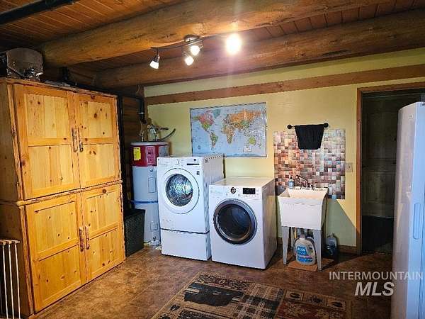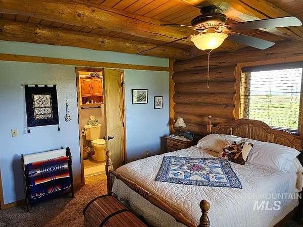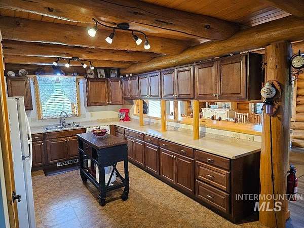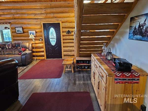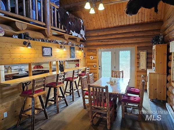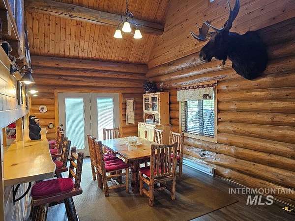 Beautiful handcrafted full-round log home. These logs have been harvested from local dead standing timber. The bark was removed with a drawknife, and each log was hand scribed to fit perfectly on top of another. The logs are fully chinked and caulked inside and out, which provides wonderful insulation value. The floor has R-38 insulation throughout. Crawl space walls are fully insulated. The upstairs sports a cozy 230 sq.ft. open loft,currently used as an office. The interior doors (including closet doors) are knotty alder. The home has a fully automatic back-up generator. There are 3 sheds on the property. The main steel shed measures 26' x 31'. RV shed measures 12' x 30'. The RV parking has full hook-ups with 30 amp electrical. Firewood shed measures 10' x 16'. You have a beautiful view of the surrounding mountains. Only minutes away from great fishing, hunting, skiing, hiking and whitewater rafting. Log furniture is negotiable.