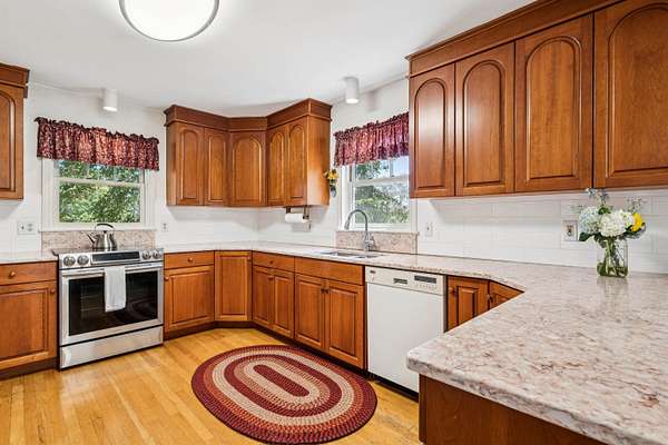 This one-of-a-kind spacious home was designed by the architect, George T. Hathorn, and built by G.R. Porter and Sons - both of whom represent an era of home building quality unsurpassed to this day. As befits the climate, the centerpiece of this house is a woodstove, framed by a grand 3-story brick chimney and adjacent staircase - a unique layout that is both beautiful and wonderfully efficient for air-flow and comfort. An abundance of well-placed windows allows natural light to pour through every room. The main floor offers a mudroom, spacious foyer, large living room with fireplace, open concept kitchen-to-dining area, walk-in pantry, and a half bath. The next level boasts a primary en-suite with full bath and walk-in closet, and a bedroom currently set-up as an office. The walk-out basement offers 2 more bedrooms, one with an en-suite full bath, and both with walk-in closets, a recreation room, and utility room with a workshop and laundry area. Situated on 2 acres of beautifully manicured land, it is just a short walk to the village of Norwich, home to the coveted Marion Cross Elementary School (top-rated Hanover High is Norwich's designated high school), and the beloved Dan and Whit's general store. A short drive to Dartmouth College, Dartmouth Health Medical Center, and King Arthur Bakery. This property offers the perfect blend of privacy and convenient access to all that the Upper Valley has to offer. Open House Saturday September 20, 11 AM - 1 PM.