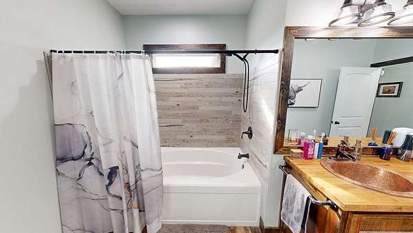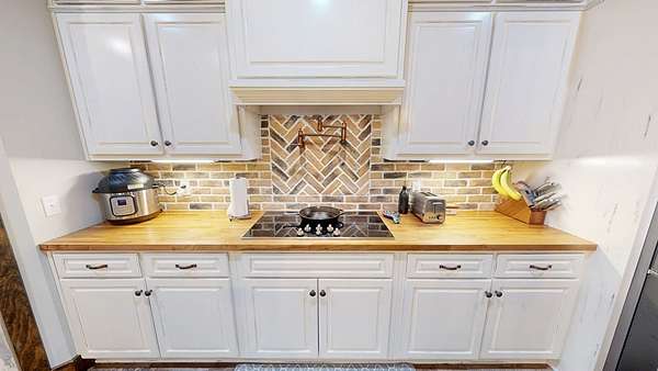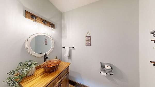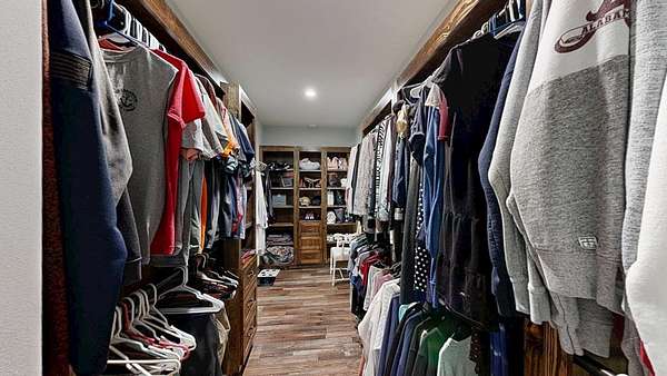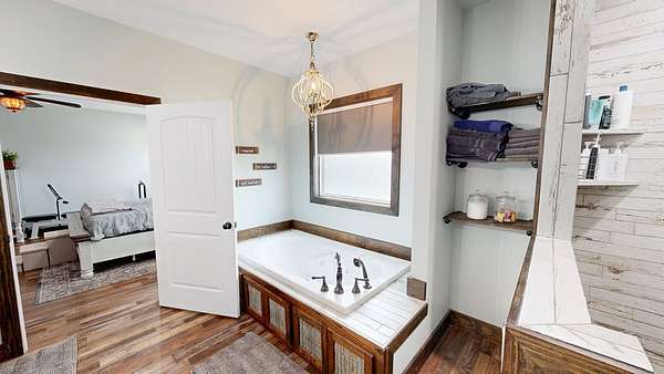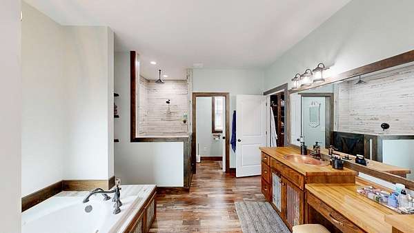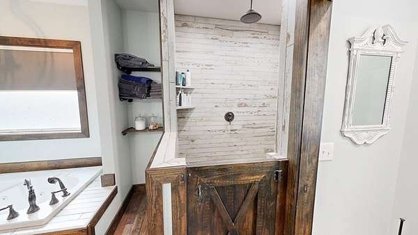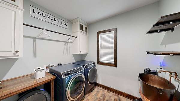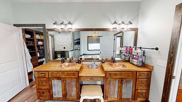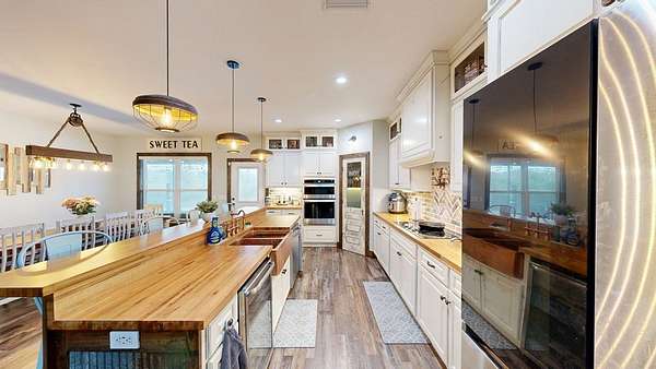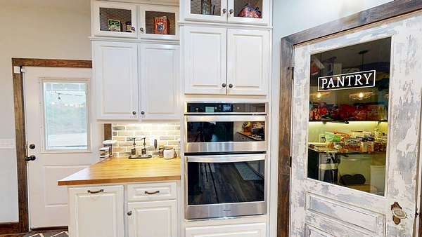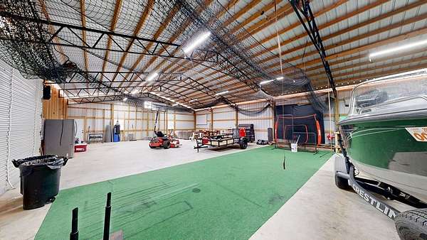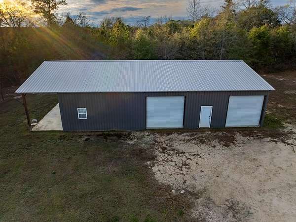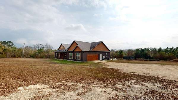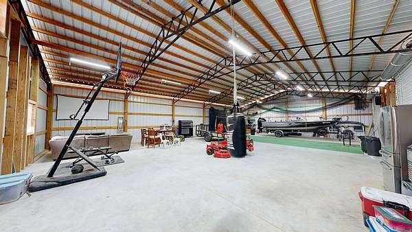 Spacious custom-constructed executive home blending modern design with rustic accents. This one-story Craftsman showcases an open-concept floor plan combining living, dining, and kitchen spaces. The living room boasts cathedral ceilings with exposed beams and a floor-to-ceiling stacked stone fireplace with mantle and electric logs. The kitchen features a large island, wall oven, pot filler over the stovetop, wine cooler, and Aqua water filtration system. Hardwood floors run throughout--no carpet. A spacious laundry room and dedicated office add convenience. The split-bedroom layout offers two secondary bedrooms sharing a full hallway bath. Step out from the kitchen to a screened-in rear patio overlooking the pristine 16x32 inground vinyl-lined pool. Additional features include an oversized two-car garage and a 40x60 detached barn/shop on slab with two 12-ft roll-up doors. Situated on approx. 20 private acres with a nearby.