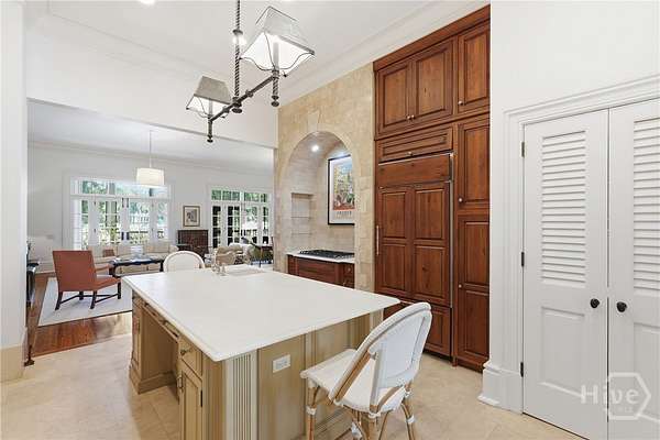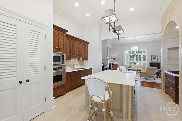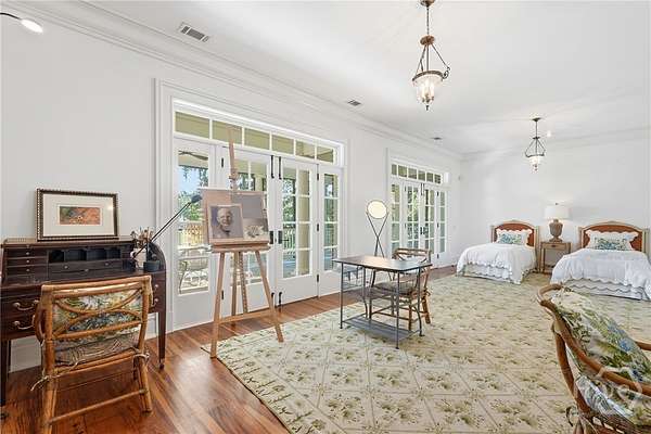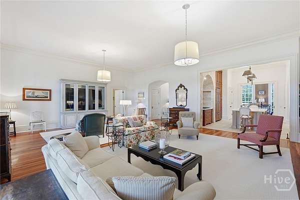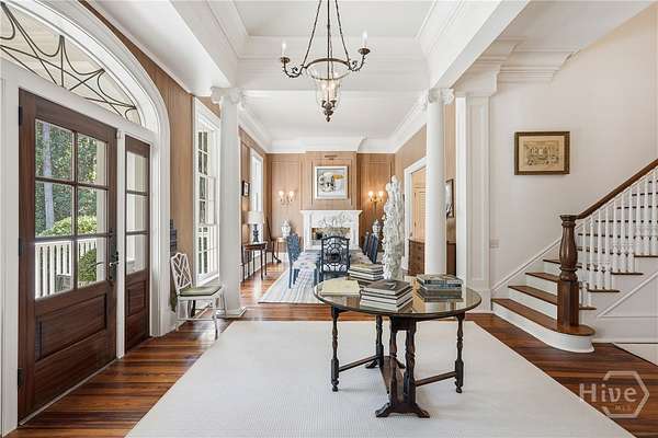 Experience the timeless elegance of Southern living at Ford Field & River Club with this refined Lowcountry estate. Designed by Hansen Architects and built by J.T. Turner Construction as the builder's personal residence, this home showcases classic Lowcountry craftsmanship, architectural integrity, and modern luxury throughout. Surrounded by ancient live oaks and overlooking the Ogeechee River's protected marshlands, the home is constructed of hand-molded Savannah Gray brick and wrapped in expansive two-story porches that capture cool river breezes. Inside, soaring 12-foot ceilings, wide-plank pine floors, and detailed millwork create warmth and sophistication at every turn. Situated on a 1.5-acre estate lot within the prestigious Ford Field & River Club, this exceptional property offers privacy, views, and access to world-class community amenities.
