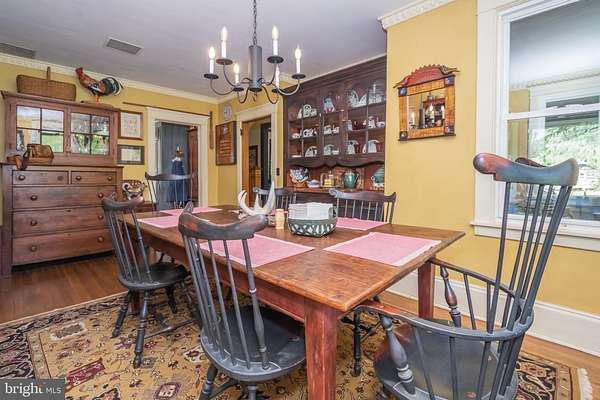 - Built-Ins, Ceiling Fan(s), Country Kitchen, Dining Area, Pantry, Stain/Lead Glass, Traditional Floor Plan, Upgraded Countertops, Water Treat System, Wood Floors