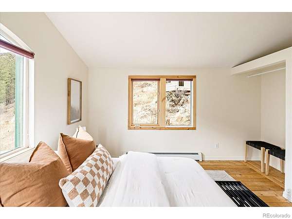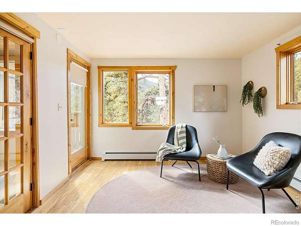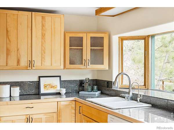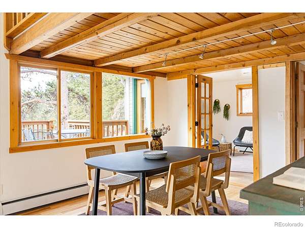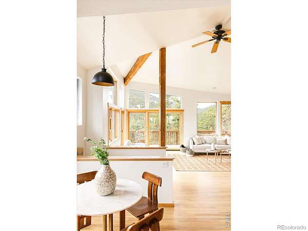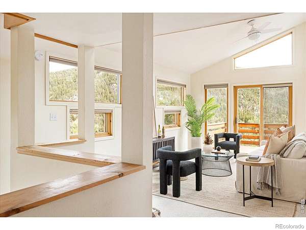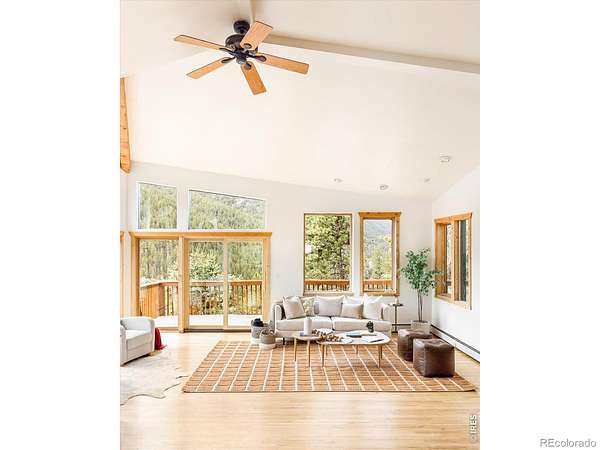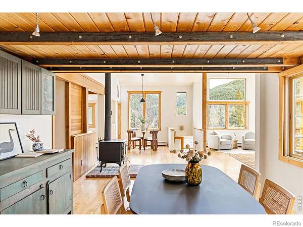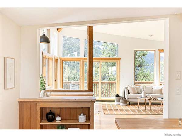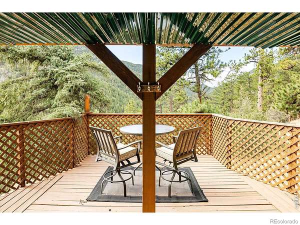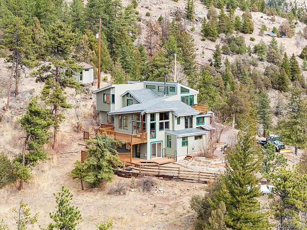This distinctive mountain home offers a rare blend of privacy, natural beauty, and architectural character on nearly six private acres. Surrounded by forest and sweeping canyon views, the home has a modern treehouse feel, with expansive wraparound windows that flood the space with natural light and bring the outdoors in. Inside, soaring 20-foot ceilings and hardwood floors anchor an open, flexible floorplan with multiple living areas for relaxing, working, or entertaining. Outdoor living is a highlight, with multi-level decks and opportunities to explore your own land, create private hiking trails, enjoy the surrounding wildlife, and take in the quiet of true mountain living. A separate detached studio welcomes your ideas and creativity to bring it to life to add versatility, ideal for an artist's retreat, yoga space, or home office. Thoughtful updates and features include new interior paint (2026), new carpet (2026), new septic system (2019), roof (2019), water heater (2022), boiler (2025), reverse osmosis drinking water system, and a new clothes dryer (2025). Enjoy the best of Boulder County's mountain communities just minutes away, spend summer evenings with live outdoor music or grab Sunday brunch at the Merc in Jamestown, or head to historic Gold Hill for local events and cozy winter dinners at the Gold Hill Inn, some of the best cycling routes and running trails nearby, all this, with downtown Boulder only 25 minutes away.