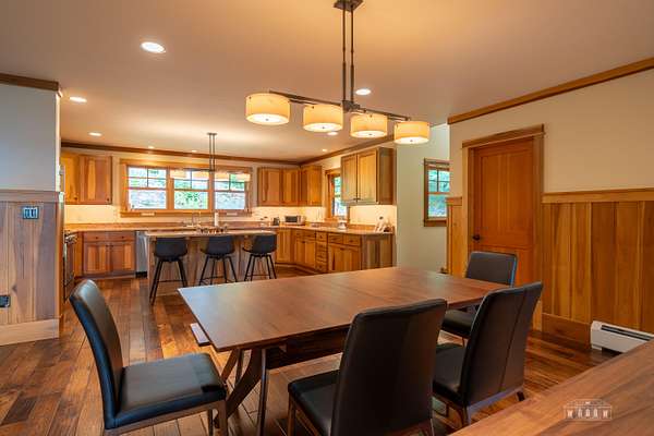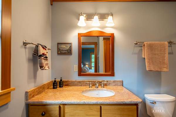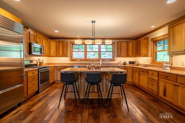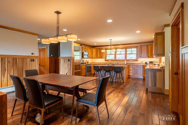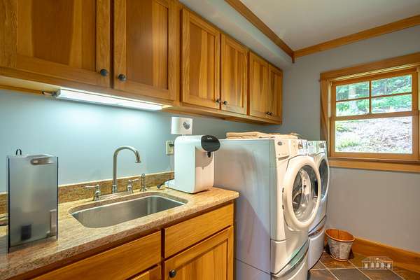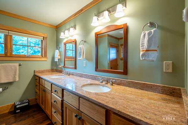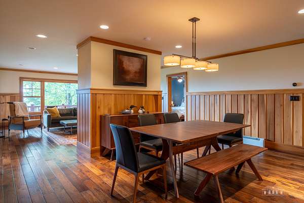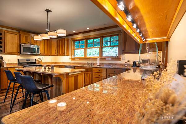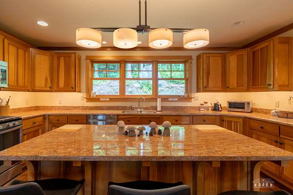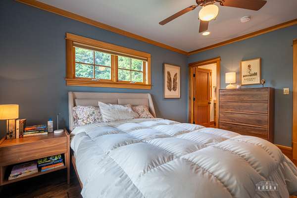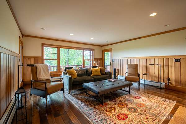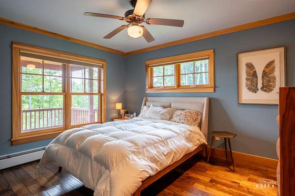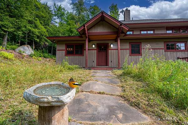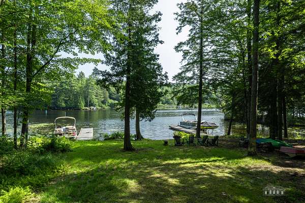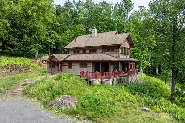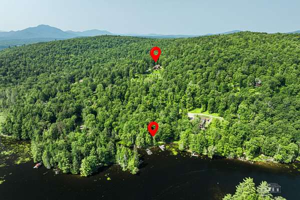 Boulderbrook Lodge checks all the boxes. Panoramic mountain and lake views, deeded lakefront with boat dock, plenty of privacy, hiking, biking trails and cross country ski trails, and a beautifully constructed 4 bedroom, 4 bath home. The three season porch adjoins a large deck overlooking the mountains with beautiful views. Home was constructed by local architect, Rich Hanpeter. Interior features include custom cabinetry, hardwood floors, granite countertops, Sub Zero refridgerator and 2 ensuite primary bedrooms on the main floor. There is a large 3 season porch on the upstairs level with spectacular views. Home comes fully furnished. Large lot allows for construction of a guest house, and/or a garage.The ideal Adirondack retreat.