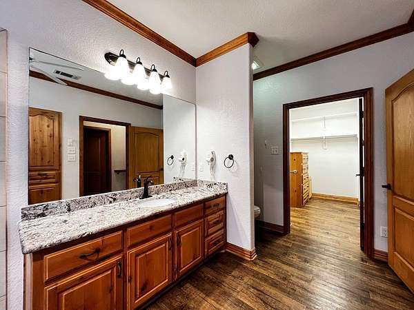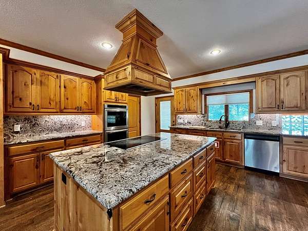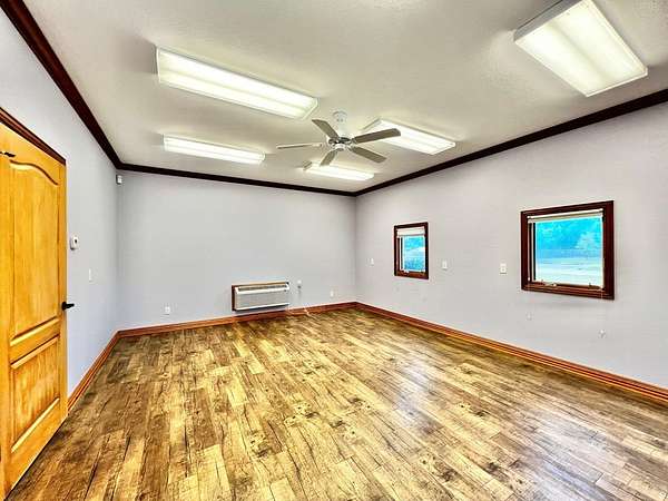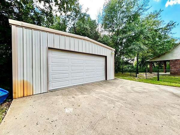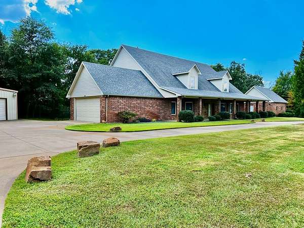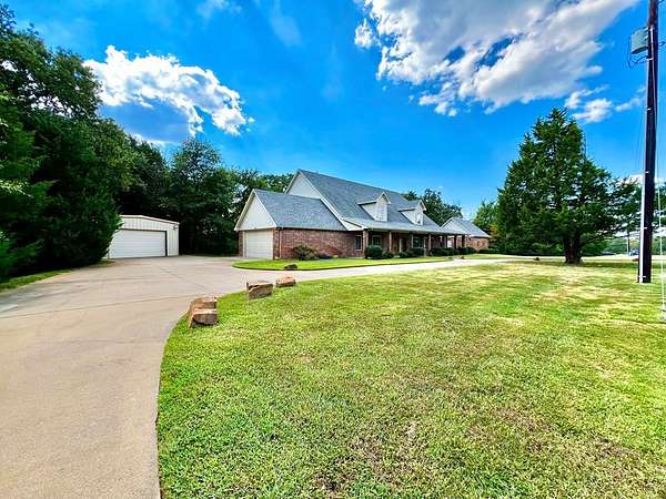 Experience the perfect blend of tranquility and convenience with this charming custom-built home on 2.65 acres. Offering 2,889 sq. ft. of living space, this 2-story residence includes 4 bedrooms, 2 full baths, and 2 half baths, plus a 2-car garage. Step inside to an inviting open-concept floor plan featuring a spacious living area with a gas fireplace, a large kitchen with an island, custom cabinetry, and stainless-steel appliances. The expansive master suite wing is located downstairs, featuring 2 separate master bedrooms, a luxurious master bath with a walk-in shower and tub, and a huge walk-in closet with built-in dressers. The main level also includes a second living area with a dry bar, a half bath, and an office, along with another half bath and a flexible room that can serve as a guest space or second office. Upstairs offers two bedrooms, a Jack-and-Jill bath, a cozy sitting area, and easy attic access. A separate 400 sq. ft. building with a mini-split for heat and AC, a half bath and walk-in closet provides endless possibilities; perfect for a guest house, game room, or creative studio. The large metal workshop features an electric door, slab foundation, and full power for extra storage or parking. Enjoy peace of mind with a tankless propane water heater and a whole-home Generac generator. Outside, relax on the wrap-around covered patio overlooking the fenced yard and heavily wooded property--ideal for privacy and quiet country living just minutes from town.
