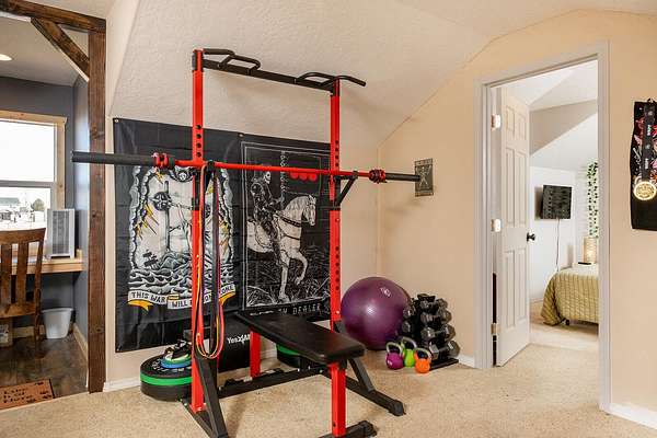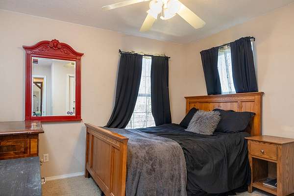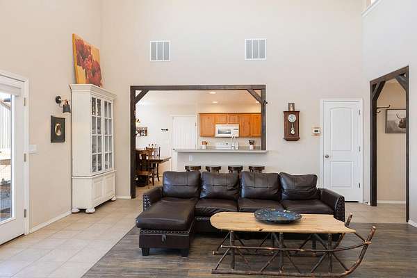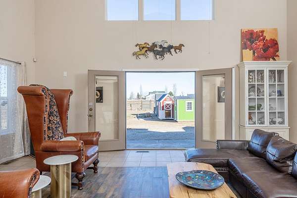 Est $2,795/moLovely ranchette with 4-bedroom home offering high ceilings & mountain views, as well as a large attached garage. EFA, and 2 wood burning stove/fireplaces and a pellet stove, as well as A/C. Newer: LVP flooring, custom lighting, wood accents, kitchen appliances. 60 x 40 barn with 3 stalls, over 2 acres with 1.25 acres of fenced areas. Lovely grounds: lawn, raised garden beds, many fruit trees.