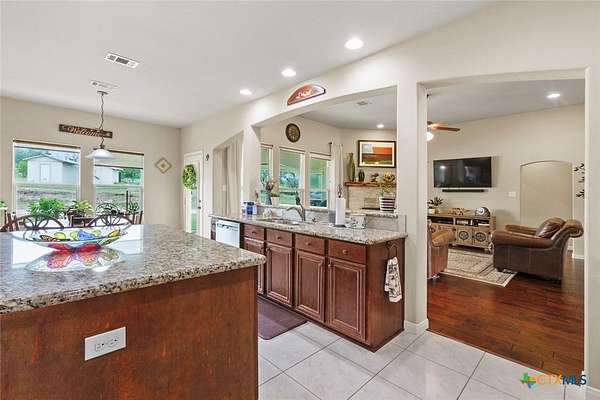 - All Bedrooms Down, Bookcases, Breakfast Area, Breakfast Bar, Ceiling Fans, Dining Area, Double Vanity, Eat In Kitchen, Entrance Foyer, Garden Tub Roman Tub, High Ceilings, Home Office, Main Level Primary, Multiple Living Areas, Open Floorplan, Primary Downstairs, Pull Down Attic Stairs, Recessed Lighting, Separate Formal Dining Room, Separate Shower, Walk In Closets