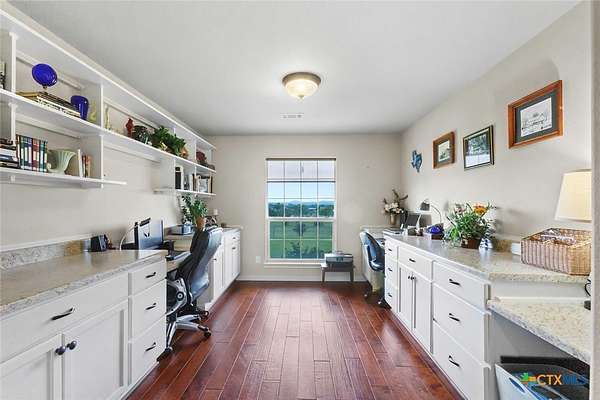 Seller offering $10,000.00 to the buyer. 187 Tracks Trail in located in the scenic Hill Country with breath taking views. This property is the peaceful and spacious rural setting but close to Comfort, Kerrville and Fredericksburg. Offering the ideal environment for those seeking privacy and natural beauty. Center Point is a small, quiet community and area is known for its picturesque landscapes, including rolling hills. Must see to believe this country living property and beautiful custom built Tilson home. Features of this property, 3 car detached garage with workshop 1900 square feet, a smokehouse, gated fenced area around the house, office has 2 built in desks with granite countertops with lots of built in storage and shelving, attached garage turned into family/game room with split air conditioner, large covered front and back patio's.