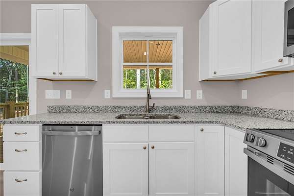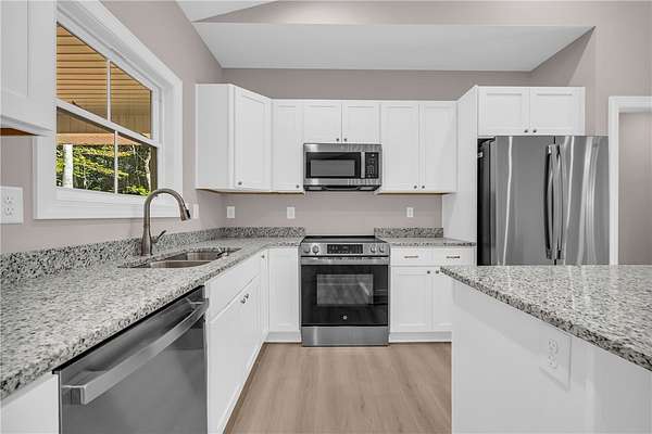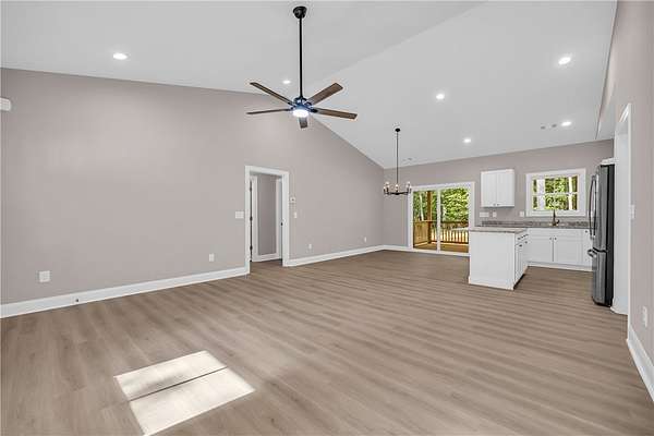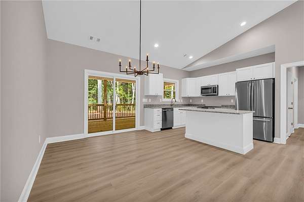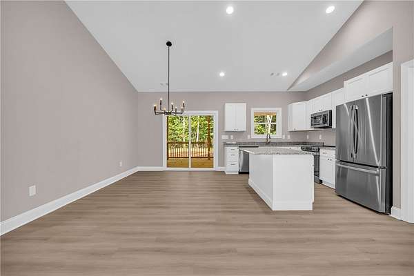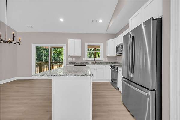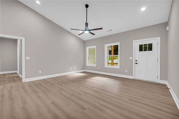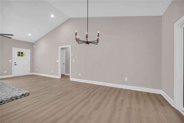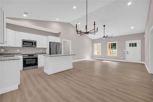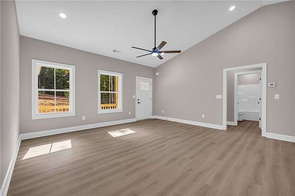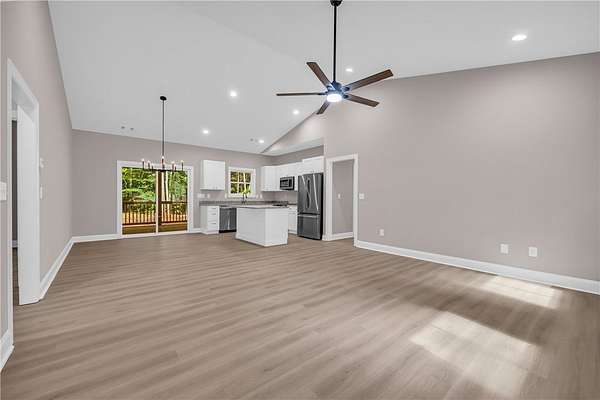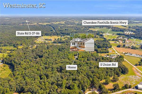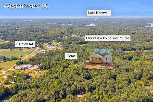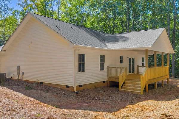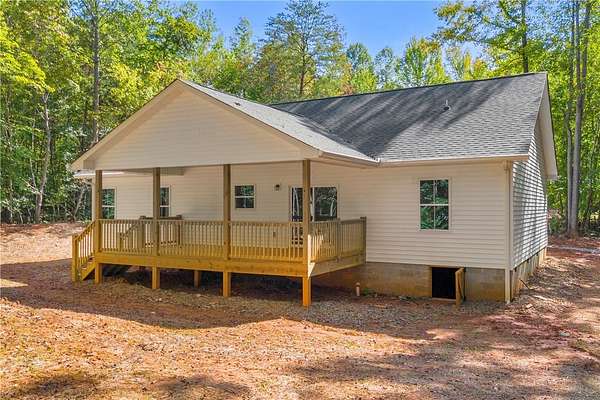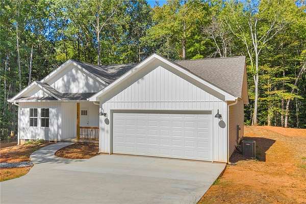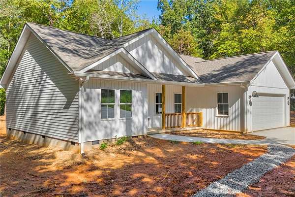 Newly finished and move-in ready, this three-bedroom, two-bath home offers almost 1,500 sq ft of heated and cooled space on 3.43 unrestricted acres, plus a two-car attached garage and concrete driveway. Inside, a spacious open floor plan showcases granite countertops, a center island, stainless steel appliances, vaulted ceilings, and durable luxury vinyl plank (LVP) flooring, with easy flow to the large back porch for indoor-outdoor living. The primary suite features a walk-in closet, walk-in shower, and his-and-hers sinks. A dedicated laundry room and hallway pantry add everyday convenience, while two generous guest bedrooms share a large full bath. Enjoy privacy with excellent access to Hwy 11, Lake Hartwell, I-85, and all the best of Oconee County. Incentives available through New Story Lending for qualified buyers. This one is a must-see.