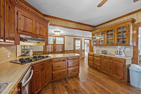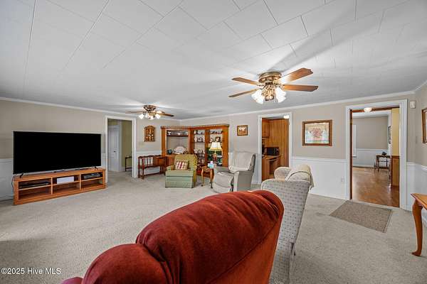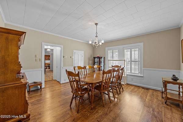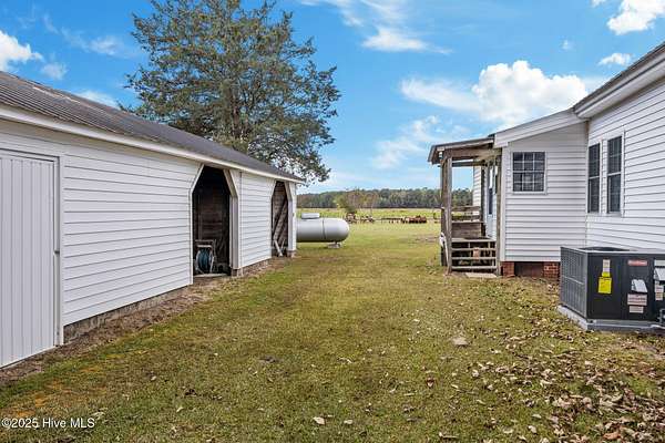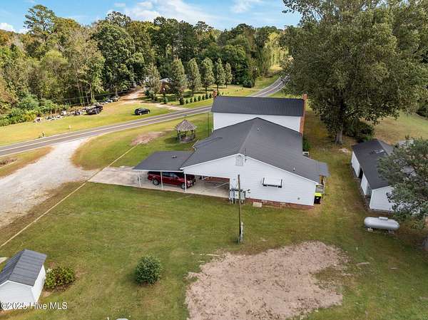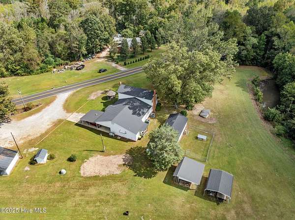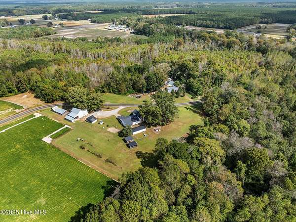 Welcome home to this charming farmhouse nestled on 5 peaceful acres. Featuring 3 bedrooms, 2 full baths and an office on the main level, along with two versatile upstairs bonus areas perfect for a home office, playroom, or guest space. The spacious kitchen is the heart of the home, featuring real wood cabinetry, a built-in pantry and convenient laundry room off to the side. The bath nearest the primary bedroom has a walk-in shower. Windows have been updated sometime along the way and the dining room and one bathroom have beautiful plantation shutters. Outside, the property shines with metal roofs on both the home and the barns, two HVAC systems (2017 & 2024), and the home is wired for a manual generator. Home is situated about half way between Williamston and Washington, with only about a 15 min drive to either town. Schedule your appointment to view this amazing property and begin enjoying country living with multiple barns, open land, and room to grow. A rare opportunity to own your slice of country paradise!