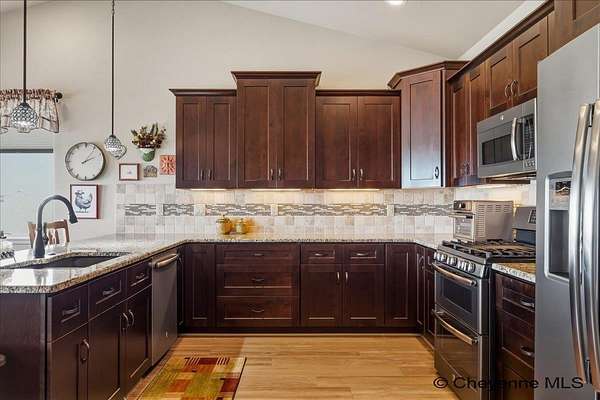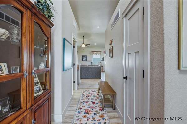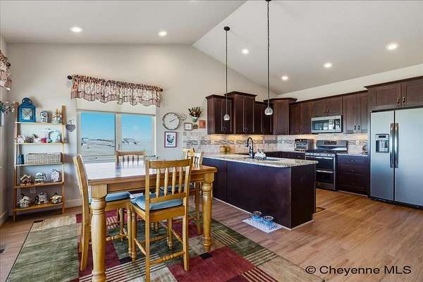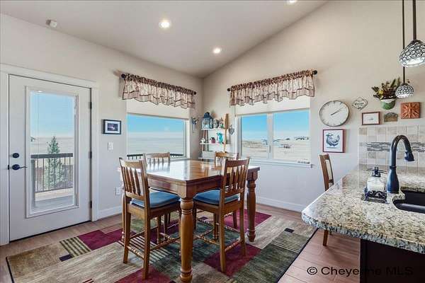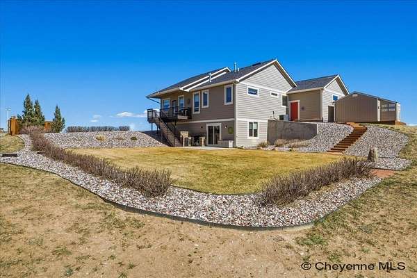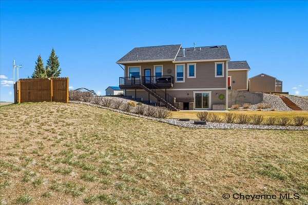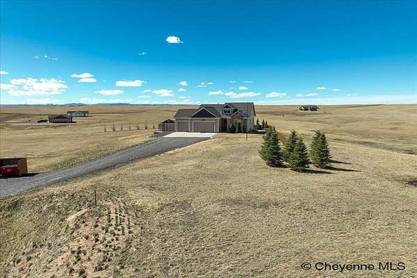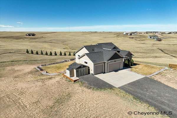 Out where the horizon stretches a little wider, this 2016 A.J Bailey semi-custom home offers the perfect balance of comfort, quality, and room to grow. Situated on 5.33 acres west of Cheyenne, this 3-bedroom, 2-bath home with a 3-car garage features a bright, open layout with granite countertops, stainless steel appliances, soft-close cabinetry, and a thoughtful mix of LVP, tile, and Berber carpet. Custom built-ins in every closet add both function and polish. The partially finished walk-out basement has additional space to expand into a 5-bedroom, 3-bath home while still enjoying natural light and easy outdoor access. Step outside to a composite deck with an outdoor kitchen and smoker, perfect for quiet evenings or gathering with friends. The property is already dialed in with sod and sprinkler systems (front and back), a live snow fence on drip irrigation, and a shed for extra storage. Additional features include central A/C, whole-home surge protection, water softener, and a housed generator with its own 100 lb propane tank—bringing comfort and peace of mind year-round. Space, function, and Wyoming living—wrapped into one incredible property.