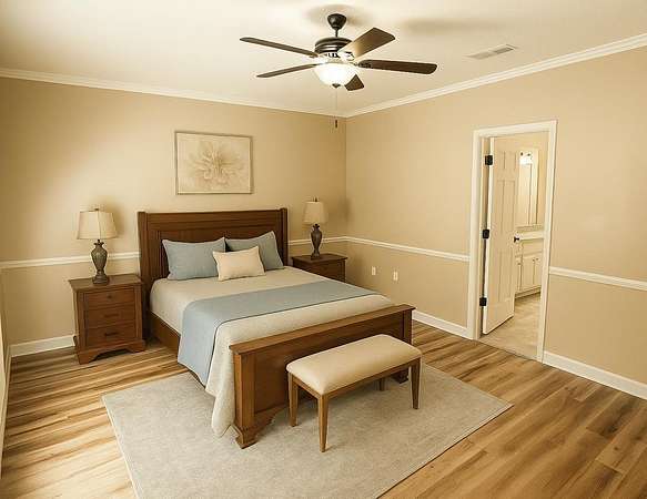 - Built-In Bookcases, Chair Rail, Crown Moulding, Granite Counter Tops, Lighting Recessed, Newly Painted, Open Floor Plan, Separate Shower Master, Specialty Ceilings, Walk-In Closets, Wet Bar