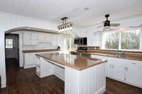Escape to peace, serenity, and views. Find the character of a stately home with one section built n 1901 and an additional constructed in 1940. Superb renovation for beauty and family living. Wrap porch, large private rear deck, partial fencing, mature trees, lovely firepit, 30'x50' barn with 7 stalls, rock pillar entry post. Leaded glass front door with leaded side lights. Handsome and welcoming farm house! Unfinished basement/saferoom. Age crack in basement wall which went unchanged for years has been engineered for construction and carries a lifetime warranty. Original floors in living room, dining room, and gathering area. Generously-sized kitchen which boasts a large central island, ogee-edged counters, st. st. appliances and beautiful tile backsplash. Crown moldings, wainscotting, butler's server, 2 walk-in closets, state-of-the-art baths. Nice flexible spaces...4-5 bedrooms (soil percs for 3 bedrooms), owner's suites could be on first and/or second levels of home. RING doorbell, fiber optics. Rolling Middle Tennessee Countryside!!