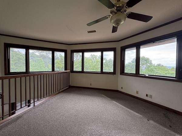 Once in a lifetime opportunity to own this one owner custom built octagon cedar home on 8 acres toward the end of a peaceful rural dead end road. The property is wooded and private. Remove some trees and get million dollar views of the Ouachita Mountains and Lake Maumelle. Get an idea from the many windows throughout the home and up the spiral staircase to the "Eagle's Nest" where a full bath and walk-in closet resides. Not many opportunities to own such a property close to Little Rock. Turkey, Deer, Bear and countless species of migratory and other native species of plants and animals call this area home also. A seasonal creek is on the property along with mature oak and other trees. The house is super clean. Could use some TLC, but worth it! House is in an estate. Agents see remarks.