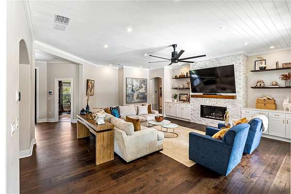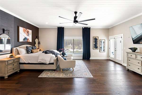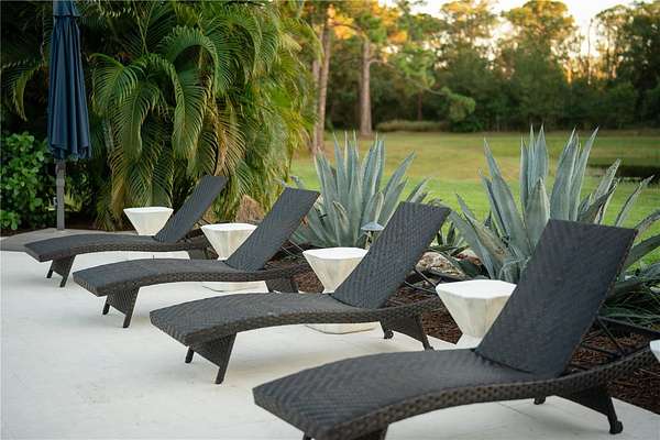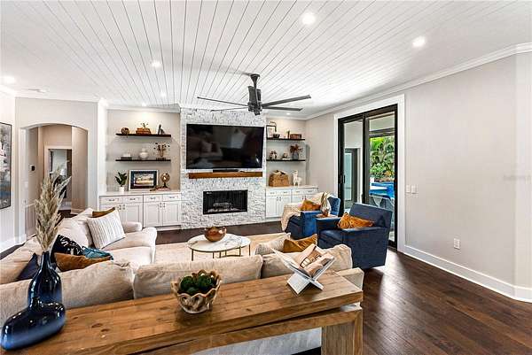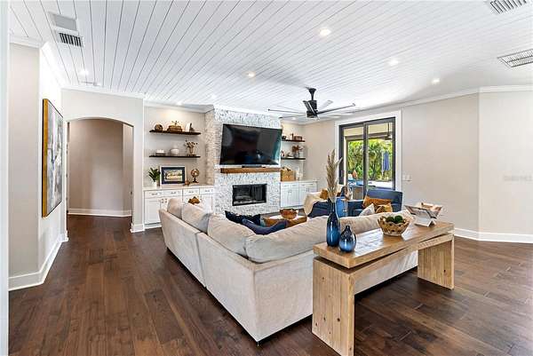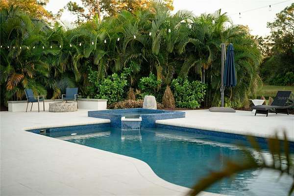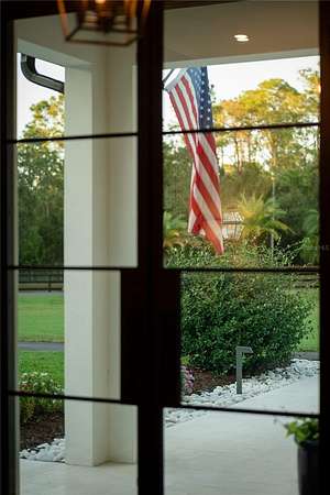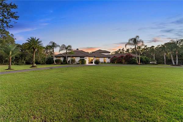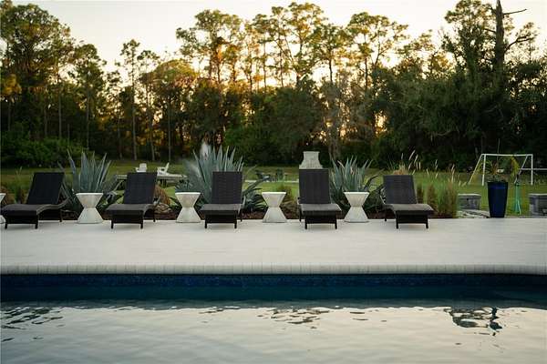 Welcome to a private modern sanctuary in the heart of the sought after Panther Ridge community, where refined design, resort style amenities, and natural tranquility come together in perfect harmony. Set on over seven acres of lush, manicured grounds, this rare estate offers the freedom to truly live the Florida lifestyle, with agricultural zoning that allows for horses, barns, gardens, and a variety of outdoor uses rarely found in luxury communities, making it ideal for an equestrian retreat, private compound, or those seeking space to expand and create. The custom built residence features six spacious bedrooms and five and a half baths, thoughtfully designed for comfort and privacy, with a primary suite that feels like a retreat of its own, offering rich wood flooring, custom wall treatments, and a spa inspired bathroom with a large walk in shower, soaking tub, and an expansive custom closet with a hidden safe room. Additional bedrooms provide generous layouts and large closets, including an upstairs suite perfect for guests, teens, or multi generational living. The home offers formal and casual dining areas, a breakfast nook off the kitchen, and an upstairs office ideal for working or creating from home, while the chef's kitchen showcases custom cabinetry, quartz countertops, a gas range, and designer tile accents that open seamlessly into the bright and welcoming living room centered around a stone fireplace. Walls of glass fill the home with natural light and create a seamless connection to the surrounding acreage. Step outside to your private resort style patio with a sparkling pool and spa, outdoor sauna, and multiple seating areas perfect for entertaining or unwinding, and beyond the lanai, enjoy your own private fishing dock overlooking a serene pond surrounded by tropical landscaping, open pasture, and endless green space ready for horses, trails, gardens, or future structures. Living in Panther Ridge means embracing space, privacy, and versatility, with equestrian trails, nature preserves, and the charm of Lakewood Ranch dining and shopping just minutes away, making this more than a home, but a seven acre estate offering luxury, freedom, and the rare ability to shape the land to match your vision.
