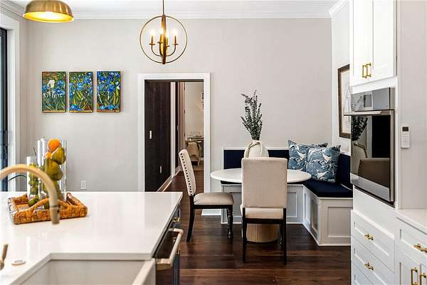 - Eat-In Kitchen, High Ceilings, Living Room/Dining Room Combo, Primary Bedroom Main Floor, Solid Surface Counters, Solid Wood Cabinets, Stone Counters