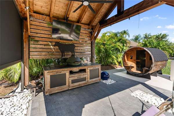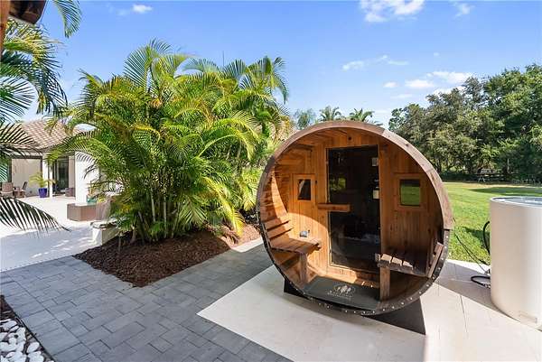- Level, Lighting, Outdoor Grill, Outdoor Shower, Pool, Private Mailbox, Sauna, Sliding Doors
