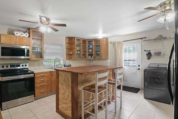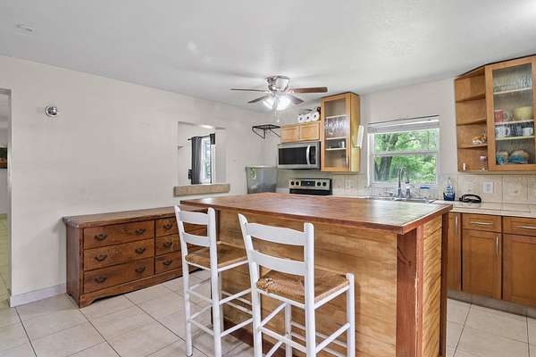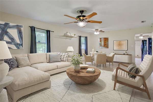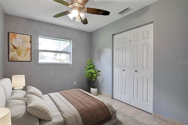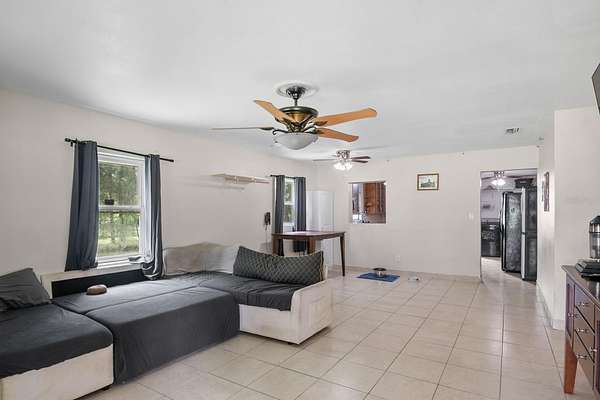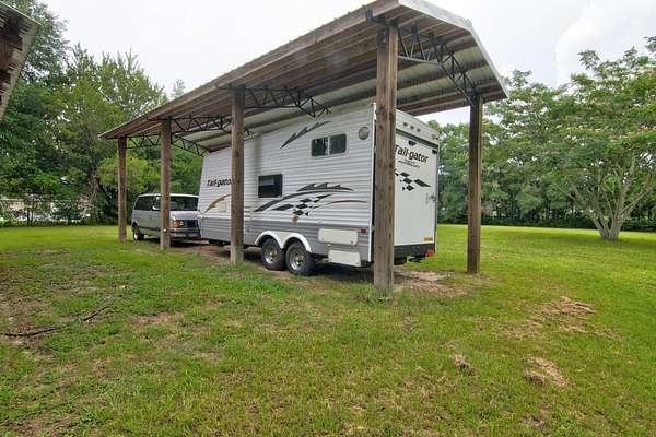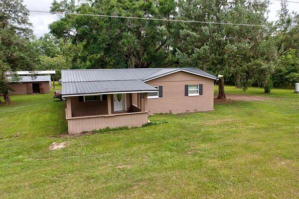 One or more photo(s) has been virtually staged. Located just minutes from downtown Alachua and nestled on a spacious 2.52 acre lot, this 3-bedroom, 2-bathroom home offers 1,312 square feet of comfortable living space and room to grow. This home features tile flooring throughout, a metal roof that's approximately 7 years old, and a newer HVAC system installed in July 2022. Outside, you'll find a detached 2-car garage with a roll-up bay door--fully wired for electricity and set up as both a garage and workshop. There's also an RV cover with convenient pull-in access, ideal for extra storage or travel-ready needs.
