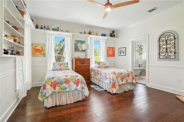 This historic Brunswick treasure is nestled beneath ancient live oaks draped in Spanish moss. LaughingHouse Manor is a lovingly restored 1895 farmhouse set on 3.48 private, gated acres. This enchanting estate offers a rare blend of Southern charm, timeless elegance, and modern comfort, making it equally suited as a private residence, event venue, or short-term rental retreat.