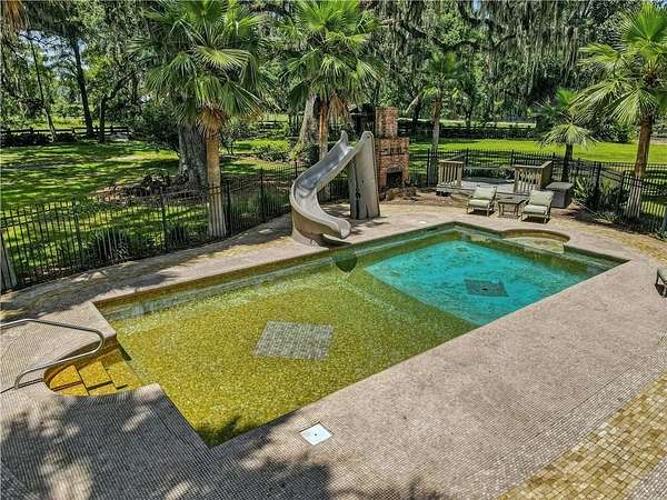 Outdoors, the grounds invite relaxation and recreation. Enjoy the saltwater pool with a slide sure to delight both children and adults, or spend a peaceful afternoon fishing in the private, bass-stocked pond. A charming barn enhances the property, with an approximately 800-square-foot studio apartment above, complete with a full bath, new air conditioning system, and its own septic--perfect for guests or additional rental income.