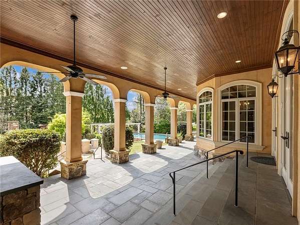 Welcome to 1871 Sam Snead Drive, a beautifully appointed estate in the private golf community, The Legends at Chateau Elan. This custom built on-of-a-kind residence sits on an oversized lot blends timeless design perfect for both everyday living and entertaining. From the moment you arrive, the circular drive creates a grand first impression and once inside you will discover a truly unique floor plan. This home features a gourmet kitchen with high-end appliances, ample cabinetry, and a large island that is open to the keeping room and breakfast area. The uniqueness of the main level boasts a library, a welcome bar, butler's pantry, and 2 powder rooms. The luxurious primary suite contains a spa-like bath, generous sized walk-in closet, built-in bookcases and windows overlooking the gardens, truly providing a private retreat for relaxation. Upstairs, you'll find well-appointed secondary bedrooms and flexible space ideal for a home office, media room, or playroom. The home's distinctive layout offers flexibility, highlighted by a private in-law suite above the four-car garage, complete with its own entrance, kitchenette and rooftop patio-perfect for guests, extended family, or even a home office. Don't miss the workshop next to garages, good for gardening, tools or extra "toys." You will entertain in style with a dedicated wine tasting cellar and finished terrace level, or step outside to experience beautifully curated English-style gardens. Two outdoor fireplaces, covered verandas, outdoor kitchen, 2 separate outdoor living/dining areas, and a European-style pool provide the perfect backdrop for year-round gatherings, whether hosting friends or enjoying quiet evenings under the stars. Located in a prestigious golf course community, residents have access to world-class amenities, shopping, dining, and a top-rated healthcare system. This home offers the perfect combination of luxury, comfort, and location.