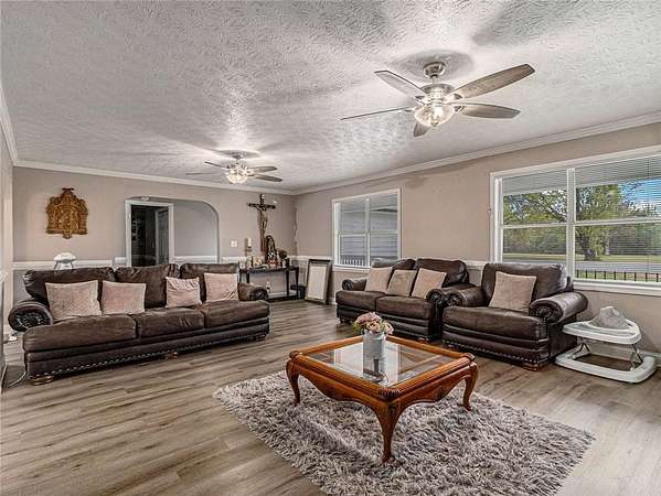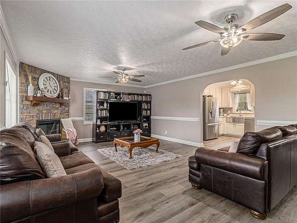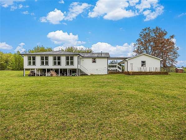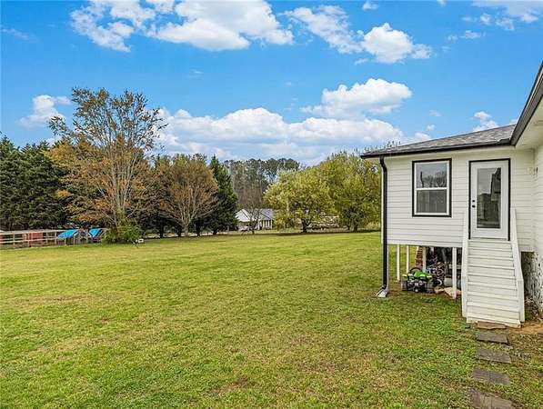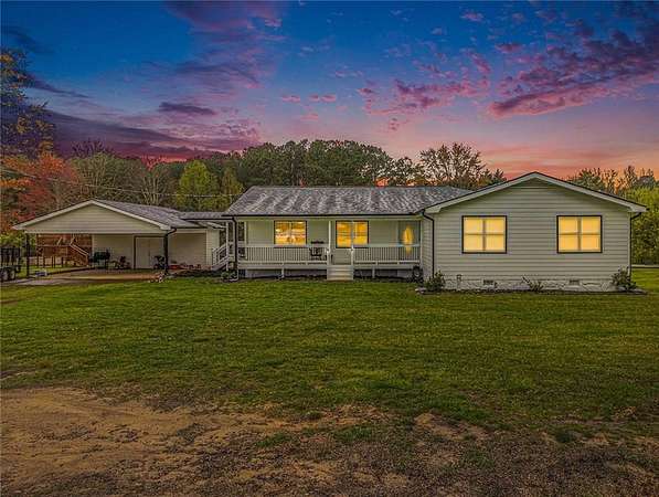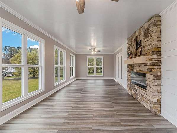 Wonderful renovated 4 BD/ 2BA home sitting on 6.35 Acres! This amazing property features an open floor plan with a beautiful new kitchen, separate dining room, large family room with fireplace, interiors with tons of light, neutral colors, and LVP flooring throughout. The secondary bedrooms are VERY spacious and the large enclosed sunroom with fireplace is perfect for entertaining. Master bedroom is large size with walking closets and direct access to the sunroom, the bathroom has been exquisitely upgraded. In the exterior, front rocking chair porch and in the backyard you will love the amazing tree house for the kids, a new barn, chicken coop, extra storage room, a big brick firepit with sitting area and more! New roof, gutters, recent HVAC. Conveniently located near to shopping and a few minutes from schools. You are in the middle of all the amenities! This is one of a kind, with large acreage and Farm Living style yet close to everything. Don't miss this opportunity for your family!