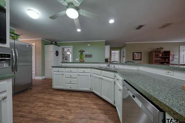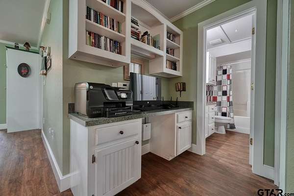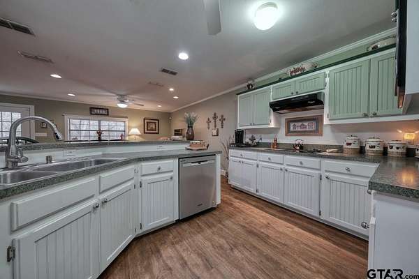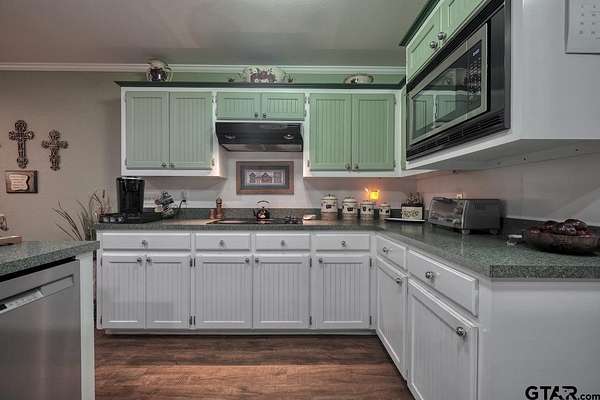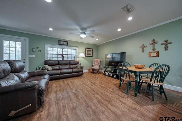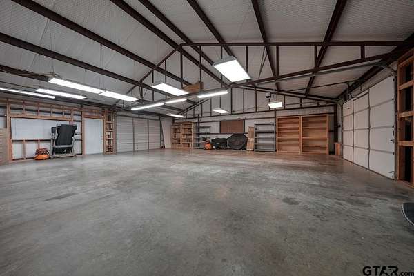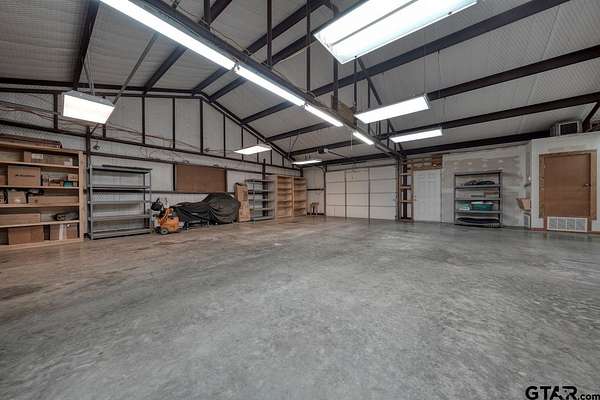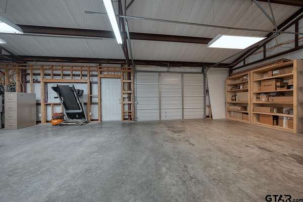 Dream it! Build it! Love it! 5 acres in Lindale ISD with large shop + barndo! Almost 3,000 total sf under roof of home and shop! The 1,604 sf home features 2 bedrooms, 2 bathrooms, an open concept with plenty of space for the chef of the family and a long sitting porch. Spacious shop is fully insulated with 1,321 sf and equipped with overhead and walk-through doors, ideal for hobbyists, business owners, or extra storage. Shop has kitchenette, half bath with toilet and wash basin. Great potential for anyone desiring to build their own dream home with a place to live until complete and then use as a mother-in-law or a guest home for later. Or, the large shop with HVAC is totally ready to be finished out for anyone wanting to add more bedrooms or enlarge living and dining area. This place provides privacy, plenty of space to explore, complete with scenic trails and mature trees while remaining conveniently close to town. Plus, a home generator ensures peace of mind in any weather. Bring your tools, toys, and big dreams--there's room for it all!