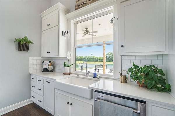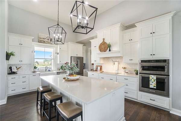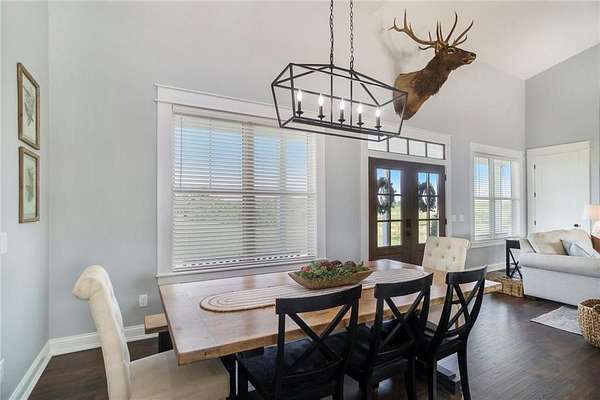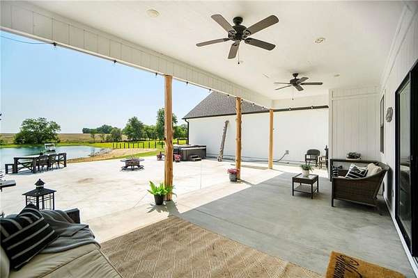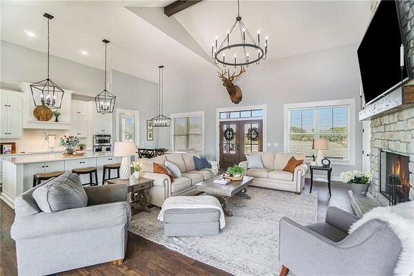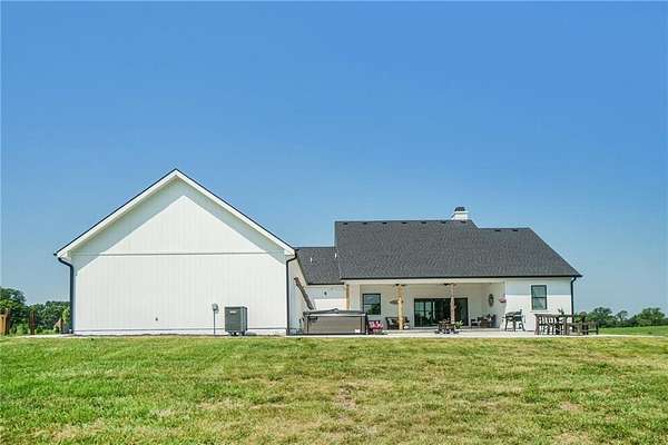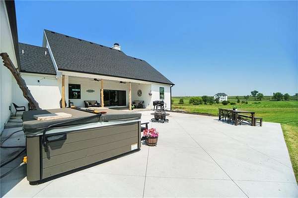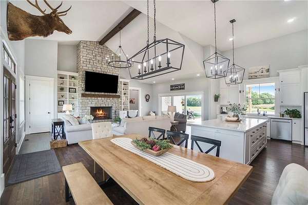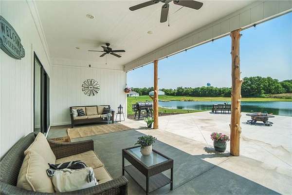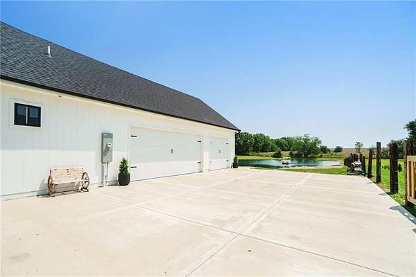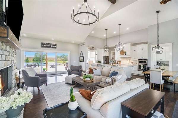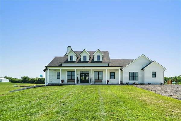 Welcome to your dream retreat! Nestled on just over 10 pristine acres with a private pond, this stunning custom-built home offers the perfect blend of luxury, comfort, and natural beauty! From the moment you pull into the drive, the charming front porch and serene setting set the tone for what awaits inside. Step through the front door into an open floor plan filled with soaring ceilings, walls of windows, and abundant natural light. The great room is the heart of the home, featuring a dramatic floor-to-ceiling stone fireplace flanked by built-ins, ideal for cozy evenings or large gatherings. The chef's kitchen is a showstopper, designed with high-end finishes including a 9' island, quartz countertops and backsplash, farmhouse sink, pot filler, stainless steel appliances, coffee bar, double oven, and walk-in pantry. The kitchen flows seamlessly into the dining area, making entertaining effortless while overlooking breathtaking views of the pond and treed landscape. The main-level primary suite is a true retreat, offering a spa-like bathroom with soaking tub, walk-in shower, dual vanities, and an expansive walk-in closet. Also on the main floor are two additional bedrooms with a Jack-and-Jill bath, plus a convenient mudroom and laundry room located just off the suite. Upstairs, you'll find a versatile bonus room, perfect for a home office, playroom, or creative space. The recently finished walkout lower level provides even more living space, complete with a large family room, kitchenette, full bath, fourth bedroom, and generous storage. Step outside to enjoy multiple outdoor living spaces, including an oversized patio with a hot tub that stays, perfect for relaxing, dining, or simply soaking in the sunsets over your private pond. Additional highlights include an oversized three-car garage with plenty of extra parking, and a location that offers peace and privacy while still being close to top-rated schools and conveniences. Schedule an apt for your dream home today!