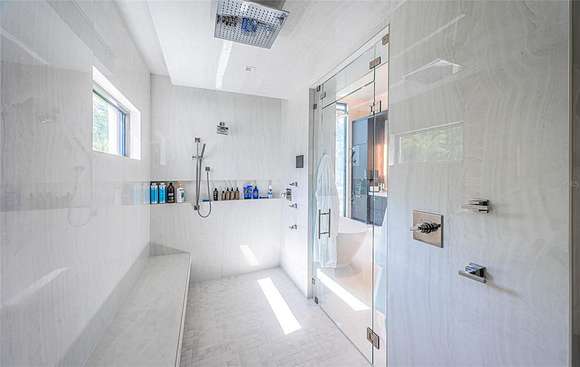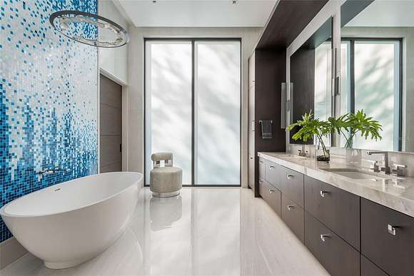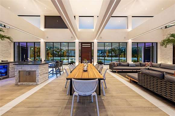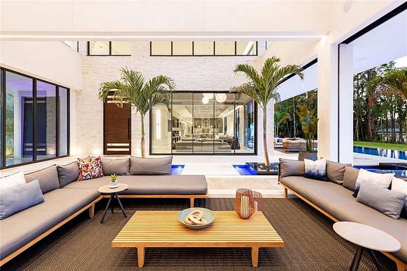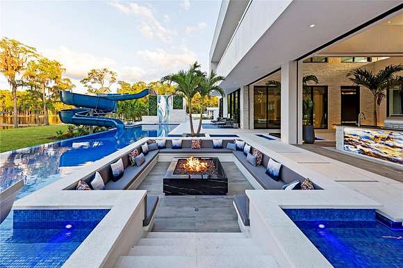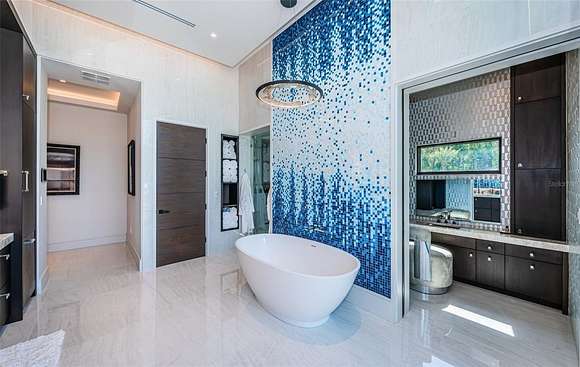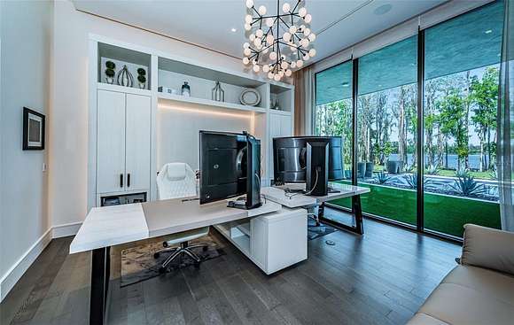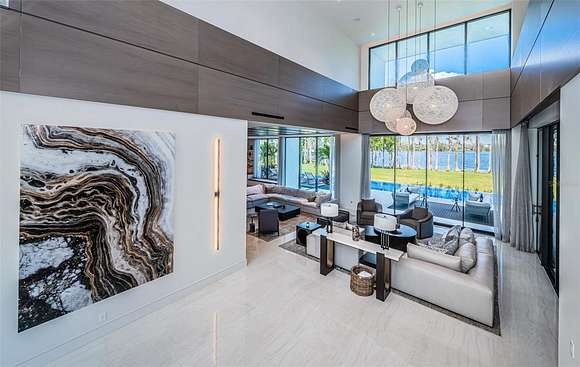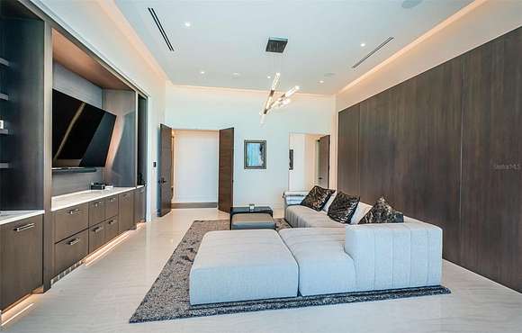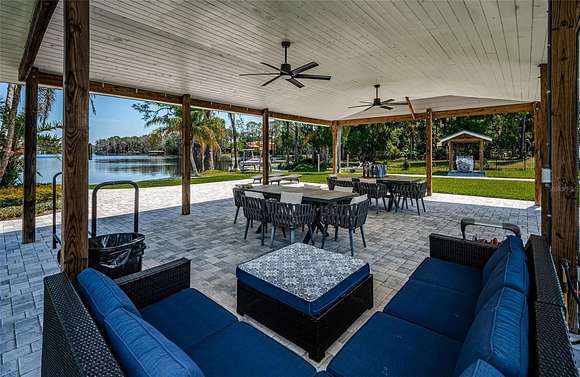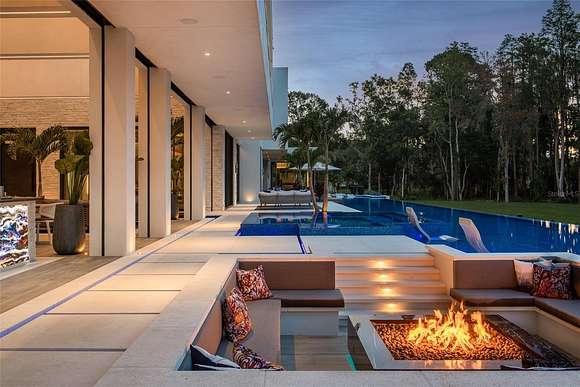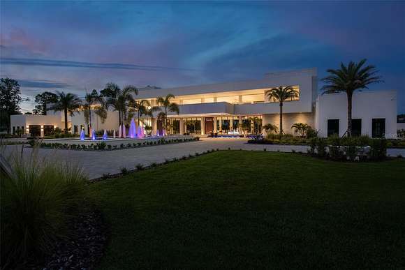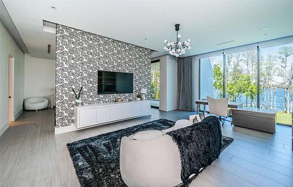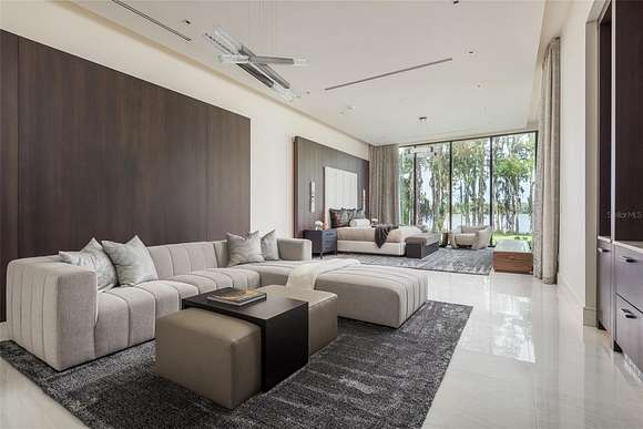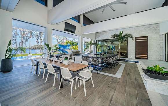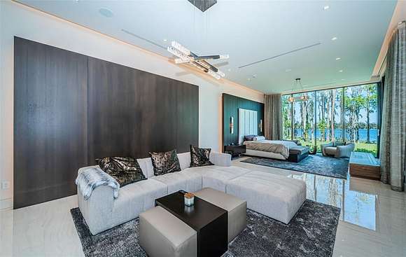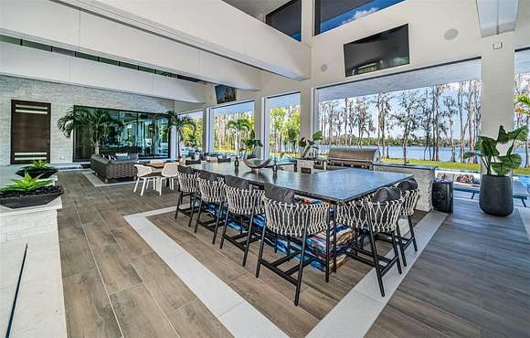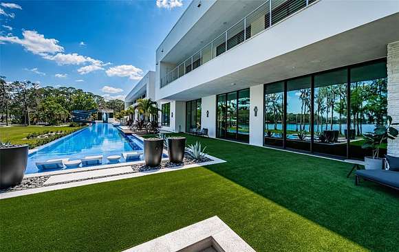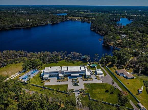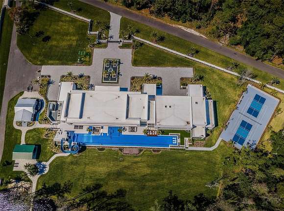 Welcome to a truly one-of-a-kind, ultra-luxurious estate that embodies the pinnacle of modern design and sustainable living. This newly built (2024), resort-style masterpiece by renowned architect Phil Kean showcases unparalleled craftsmanship and meticulous attention to detail, with no expense spared in every aspect of the home. This architectural sanctuary is set on a breathtaking nearly 5-acre lakefront homesite with expansive views of the private Island Ford Lake. The show-stopping multi-million dollar infinity pool, designed by Ryan Hughes and featured on the cover of Luxury Pool & Outdoor Living Magazine, is just the beginning. With a tennis court, pickleball court, and dock equipped with boat and jet ski lifts, this estate offers a true waterfront lifestyle. The covered lanai is nearly 4200 SF alone and features an automatic remote screen and full outdoor pool bath. Inside, you'll discover an impressive movie theater, with a state-of-the-art sound system, captivating audio-visual, and lighting features throughout the home. The main residence boasts expansive living areas, 5 bedrooms, 7 bathrooms, and over 16,000 SF of living space, with a total of over 23,000 SF. The estate's total includes 6 bedrooms, 10 bathrooms, and features a total of 6-car garage bays with high ceilings, allowing for car lifts. Guests will enjoy a luxurious ADA-accessible 1-bedroom, 1.5-bath guest house, while the charming lake house cabin includes a full kitchen, bath, and screened porch for relaxing after a day on the water. For wellness and relaxation, the estate offers a state-of-the-art sauna room, a tranquil massage room, and a fully equipped fitness center, ensuring every need for rejuvenation and physical well-being is met. This home is enhanced with world-renowned Alex Turco art, which wraps the inside and outside bar as well as the pool water feature. The estate is fully enclosed by a stone wall for ultimate privacy and security, with gate access featuring facial recognition at the main entry and a separate service entrance. With too many features to list, this sanctuary offers the tranquility of lakeside living, just moments away from the vibrant Tampa Bay area.