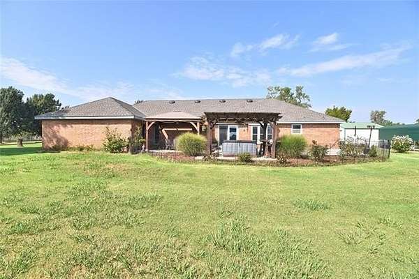 Fantastic corner lot property with 5 full acres in the Choctaw School District! 20x40 shop built on concrete, 2 other outbuildings plus the beginnings of a greenhouse await your creativity! The house has 3 bedrooms plus an office or den that could be a 4th bedroom if needed as such, large living room, formal dining room or flex room is generous size, walk in pantry, breakfast nook in the kitchen which overlooks the property towards the east! Being situated at the top of the hill lends to beautiful views and serene setting. Enjoy those fall nights in the included hot tub. Plenty of room for a garden. Only a portion around the house is fenced. Some of the property is wooded and some is clear. Very private setting.