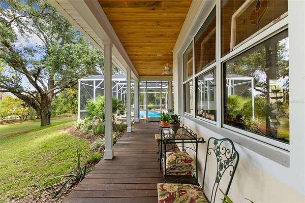 Built with CBS on the first floor and carefully maintained by the original owner, the home features hardwood floors, tongue and groove ceilings on the wrap-around porches, and multiple indoor and outdoor areas ideal for gathering. All 5 bedrooms in the main house are located upstairs, including a primary suite that overlooks the lake and spacious backyard and features its own private balcony. The screened-in pool offers a quiet retreat, while the layout downstairs lends itself well to entertaining. Along with an 840SF barn dominium complete with its own bedroom, bath, kitchenette, and loft, ideal for guests or storage. A two-stall barn, detached garage, and open grounds make the property equestrian-friendly.